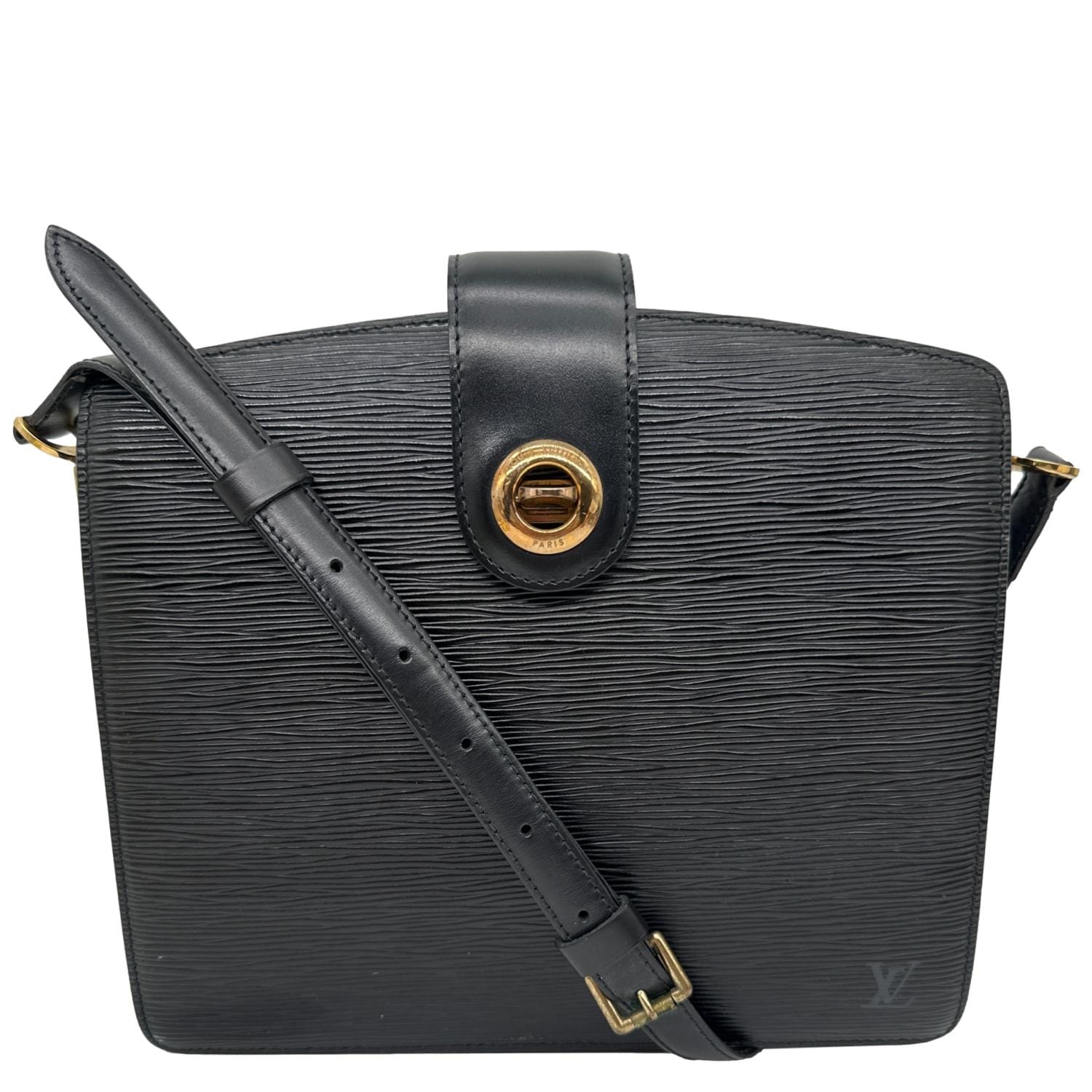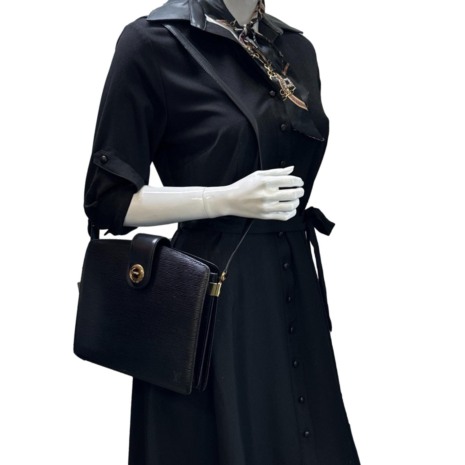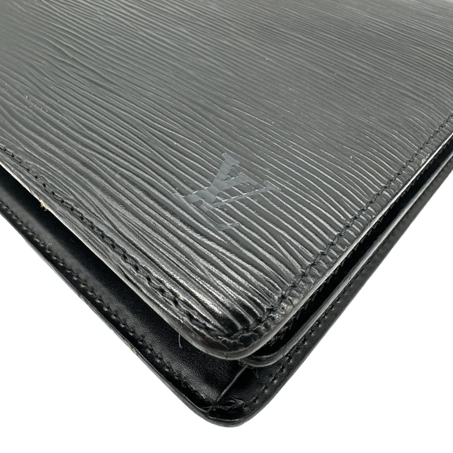 LOUIS VUITTON Capucine Vintage Shoulder Bag in black Epi leather featuring a structured silhouette with signature textured finish and refined LV detailing. Elegant and timeless design with an organized interior, perfect for sophisticated everyday wear with an understated luxury appeal.
