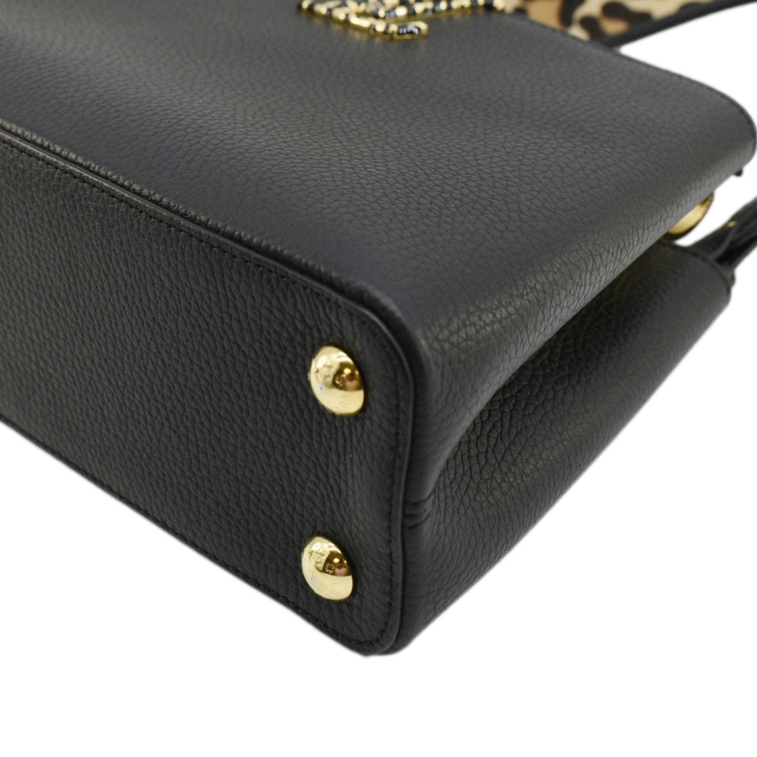 Capucines BB Leopard Taurillon Leather Shoulder Bag Black