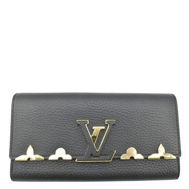 LOUIS VUITTON Capucines Crown Flowers Taurillon Leather Wallet Black