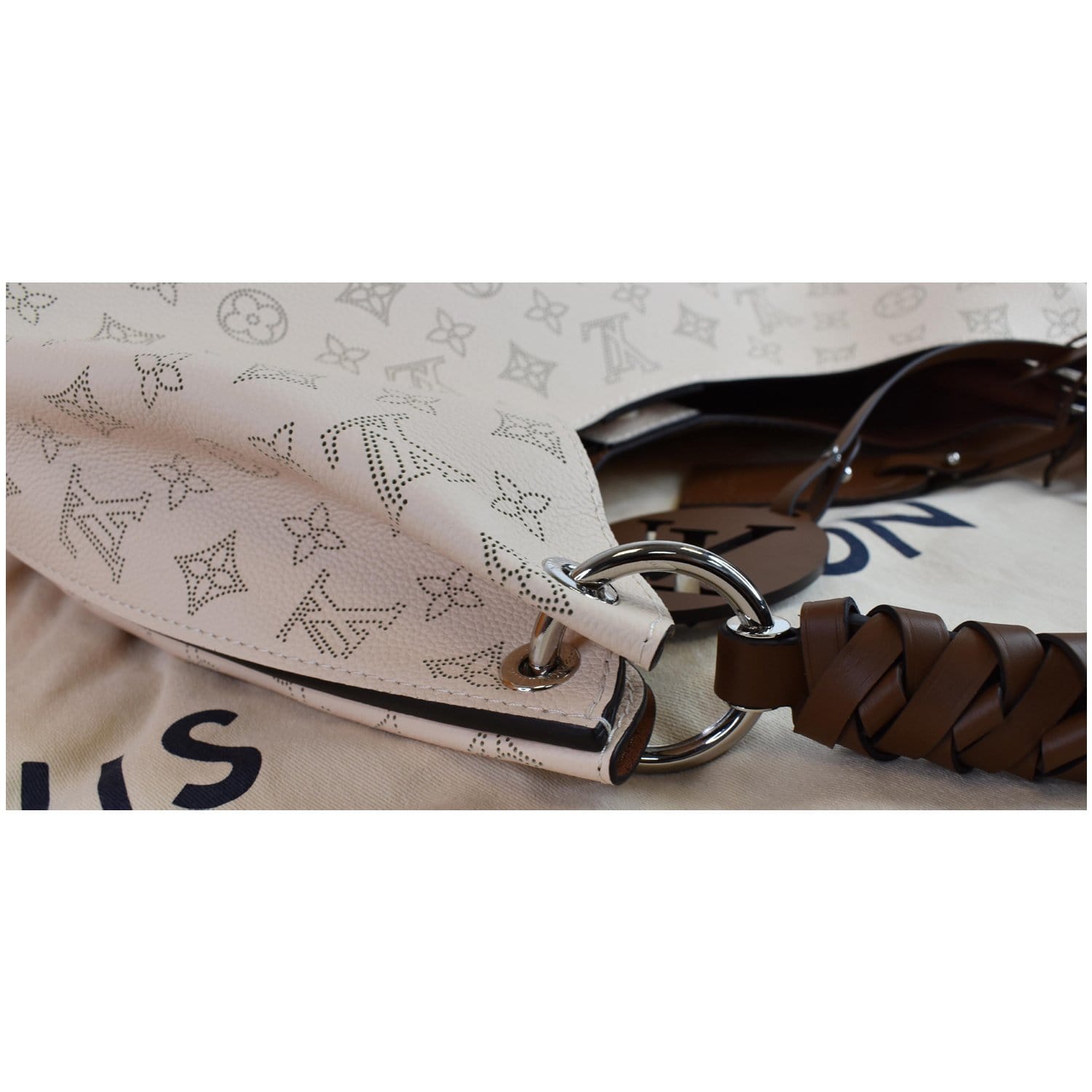 LOUIS VUITTON Carmel Mahina Calf Leather Hobo Bag Cream