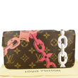 The Louis Vuitton Chain Flower Monogram Canvas Zippy Wallet in Brown combines iconic Monogram canvas with a gold-tone chain and flower details. This stylish wallet offers ample storage with a zip-around closure, perfect for everyday use.