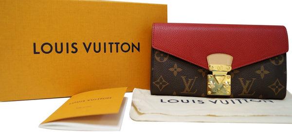 This striking combination of Monogram canvas and a dash of modern color makes this Pallas wallet a must-have! Calf leather lining in Cherry creates a luxuriously appealing wallet that opens with an iconic S-Lock to reveal a spacious 16 card slots.