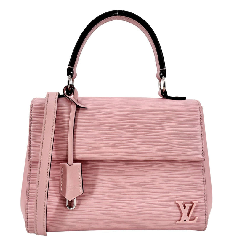 The Louis Vuitton Cluny BB in Epi Leather features a structured silhouette with a sleek top handle and a detachable crossbody strap. Finished in a soft pink hue, it's both elegant and practical for everyday wear.