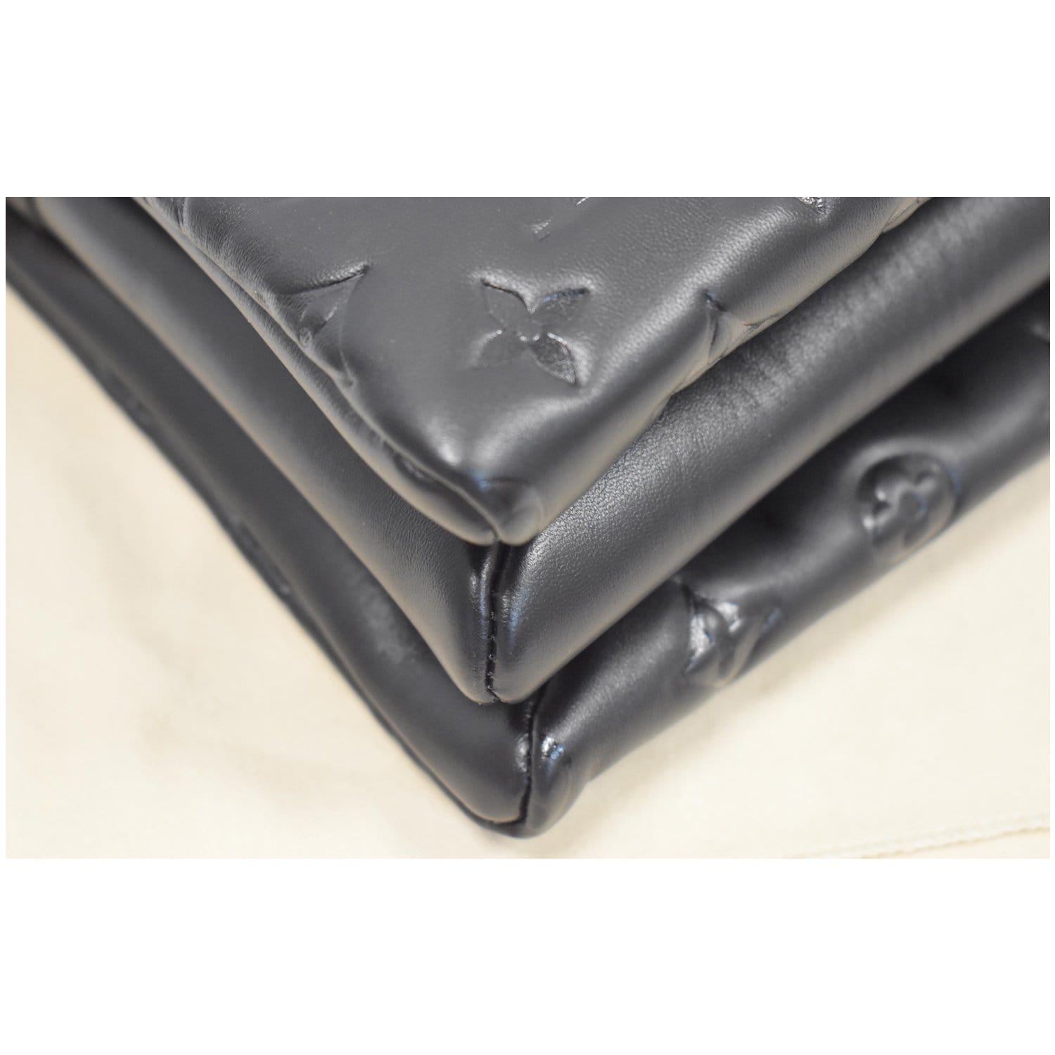 - Material: Monogram-embossed puffy lambskin and Calfskin-leather trim