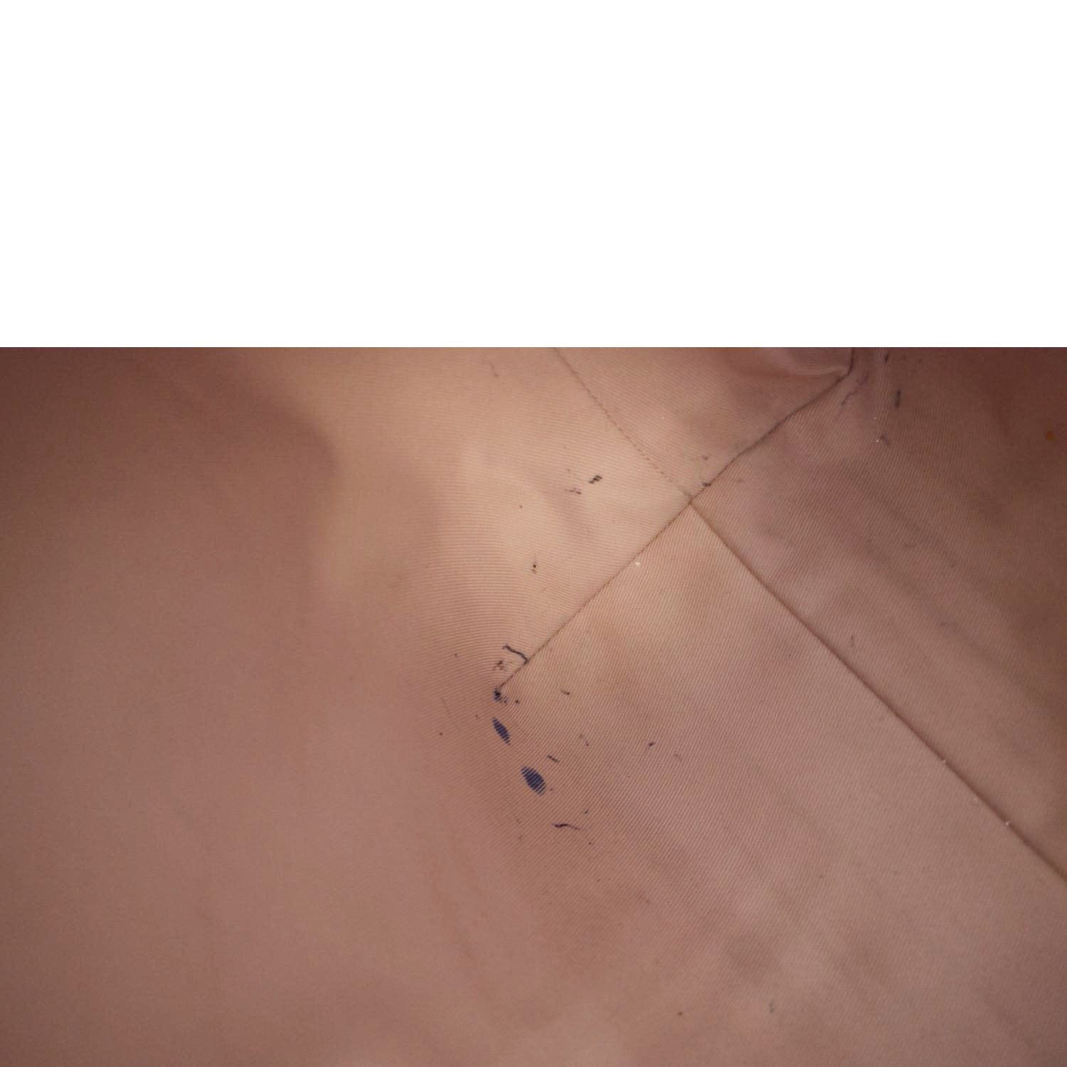 Good - The Item shows signs of use, including rubbed and cracks on corners, inside stain marks, and ink marks. The hardware is discolored and has scratches. There's no smell or odor within the bag.