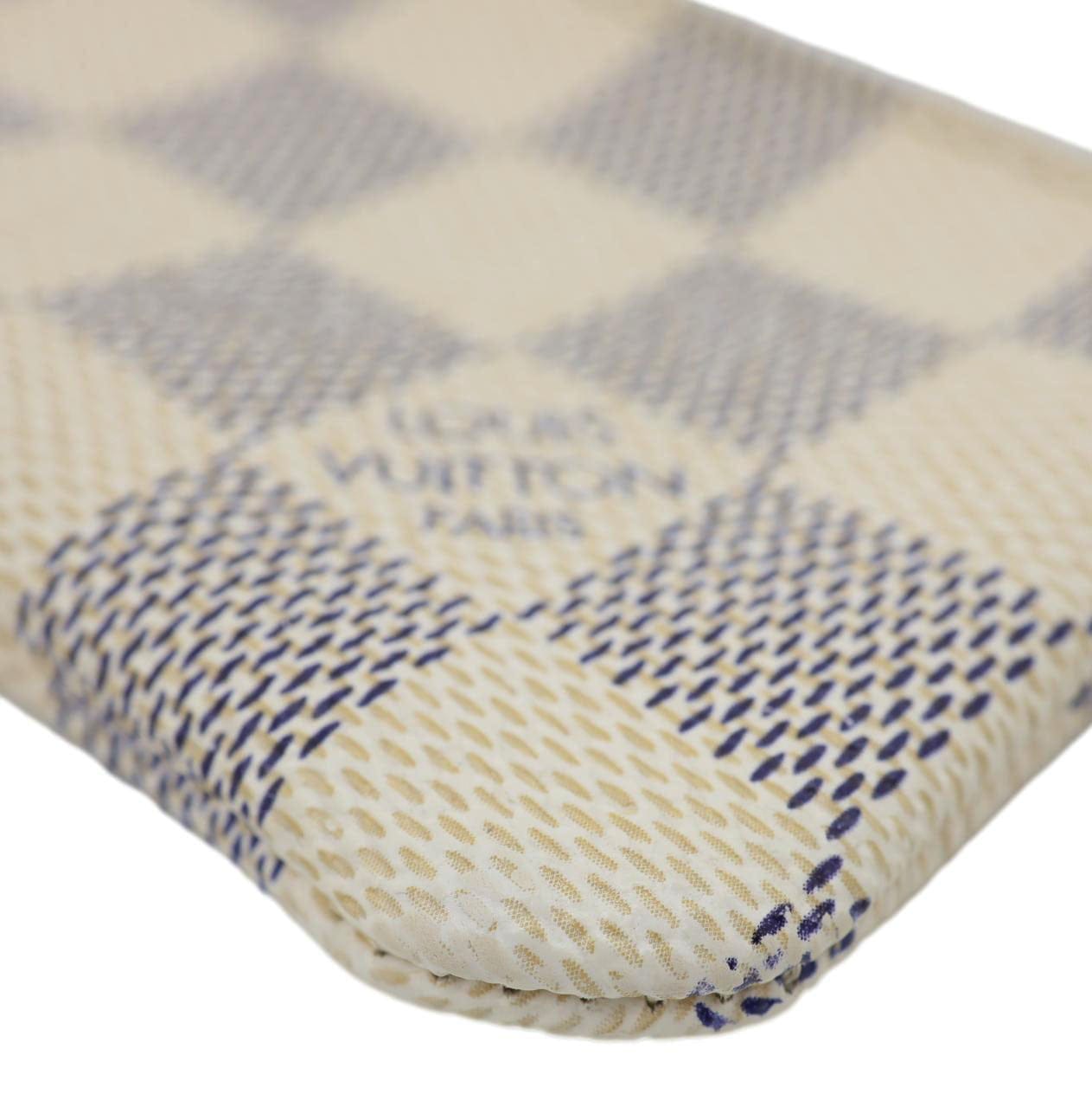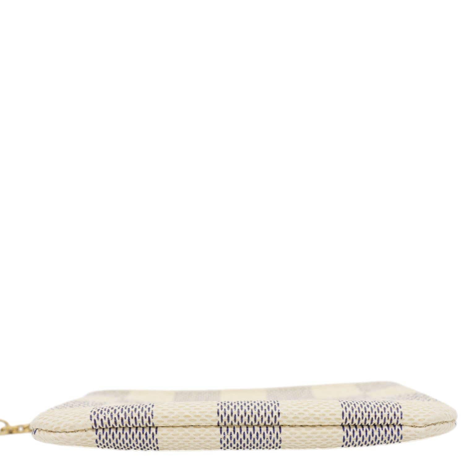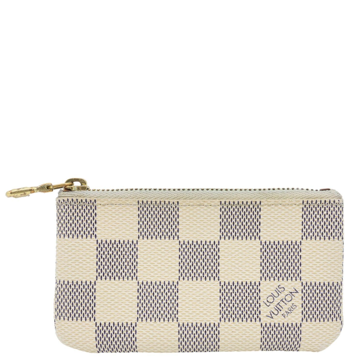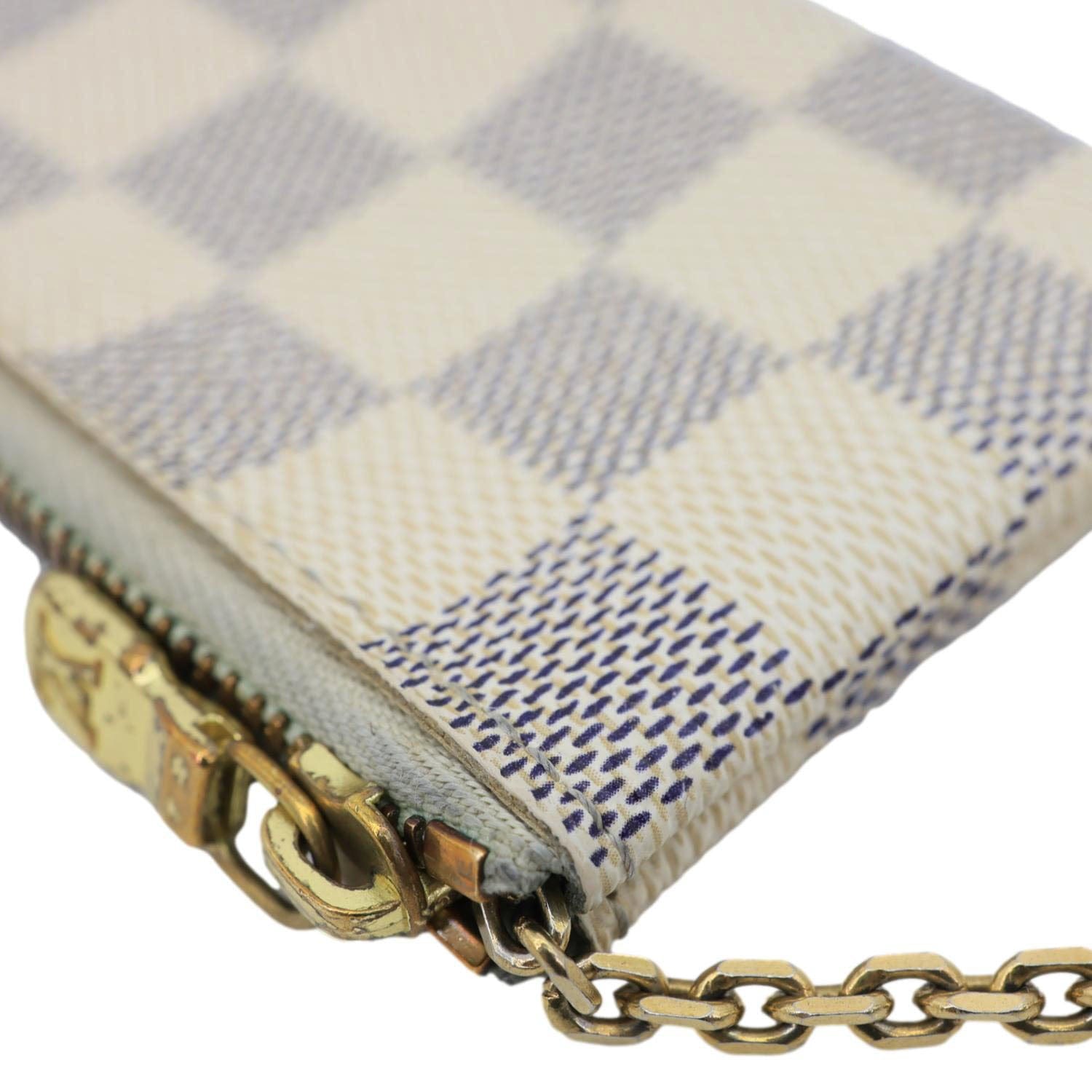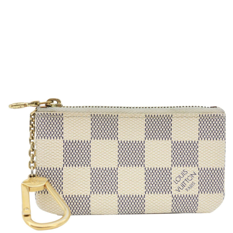 LOUIS VUITTON Key Coin Pouch crafted in Damier Azur canvas with a clean white finish. Compact and versatile design with a keyring, perfect for holding coins and small essentials.