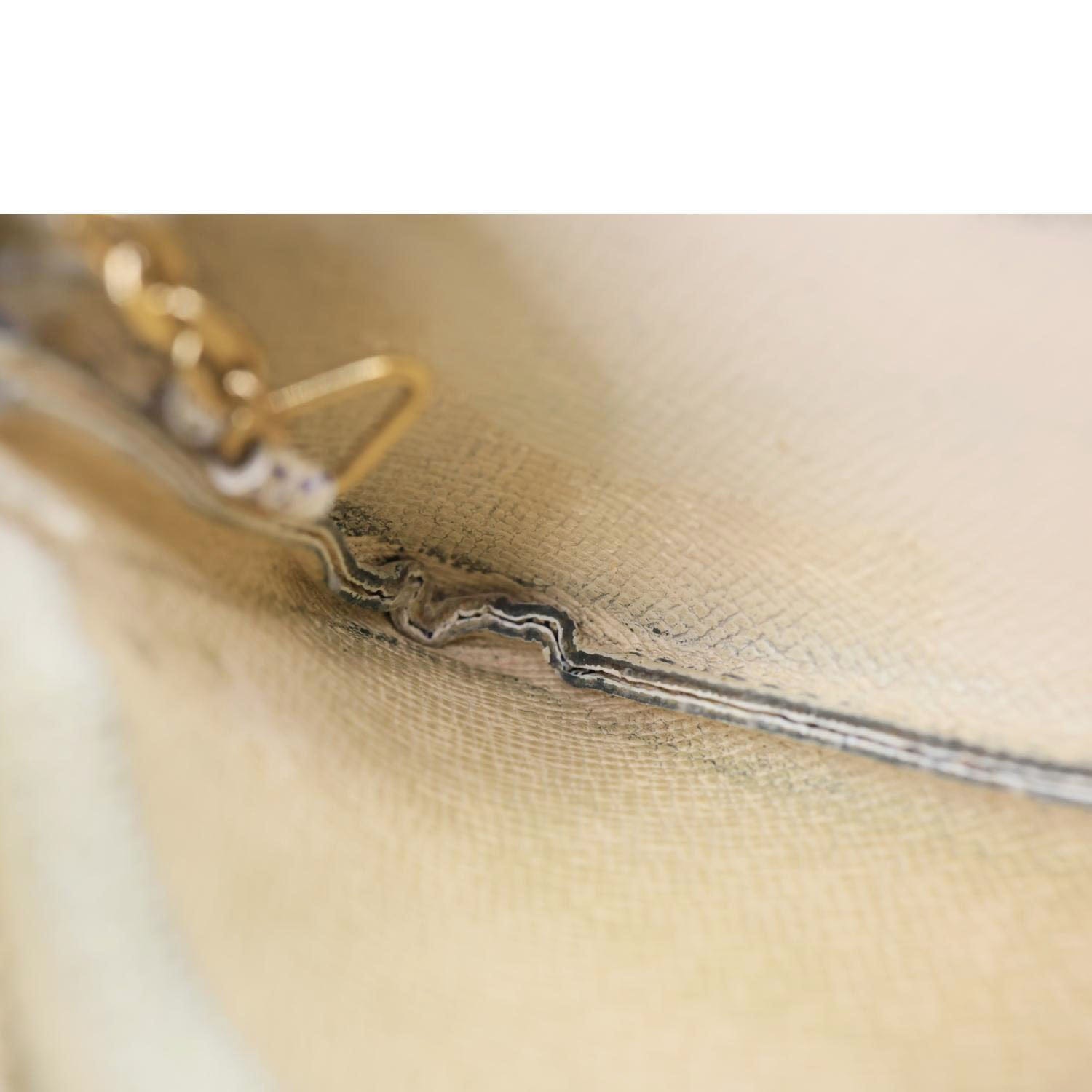 Good - The Item shows signs of use, including rubbed corners, and has rubbing, peeling, and dirt marks on the interior. Its gold-colored hardware has scratches and discoloration. There is no unpleasant smell within the item.