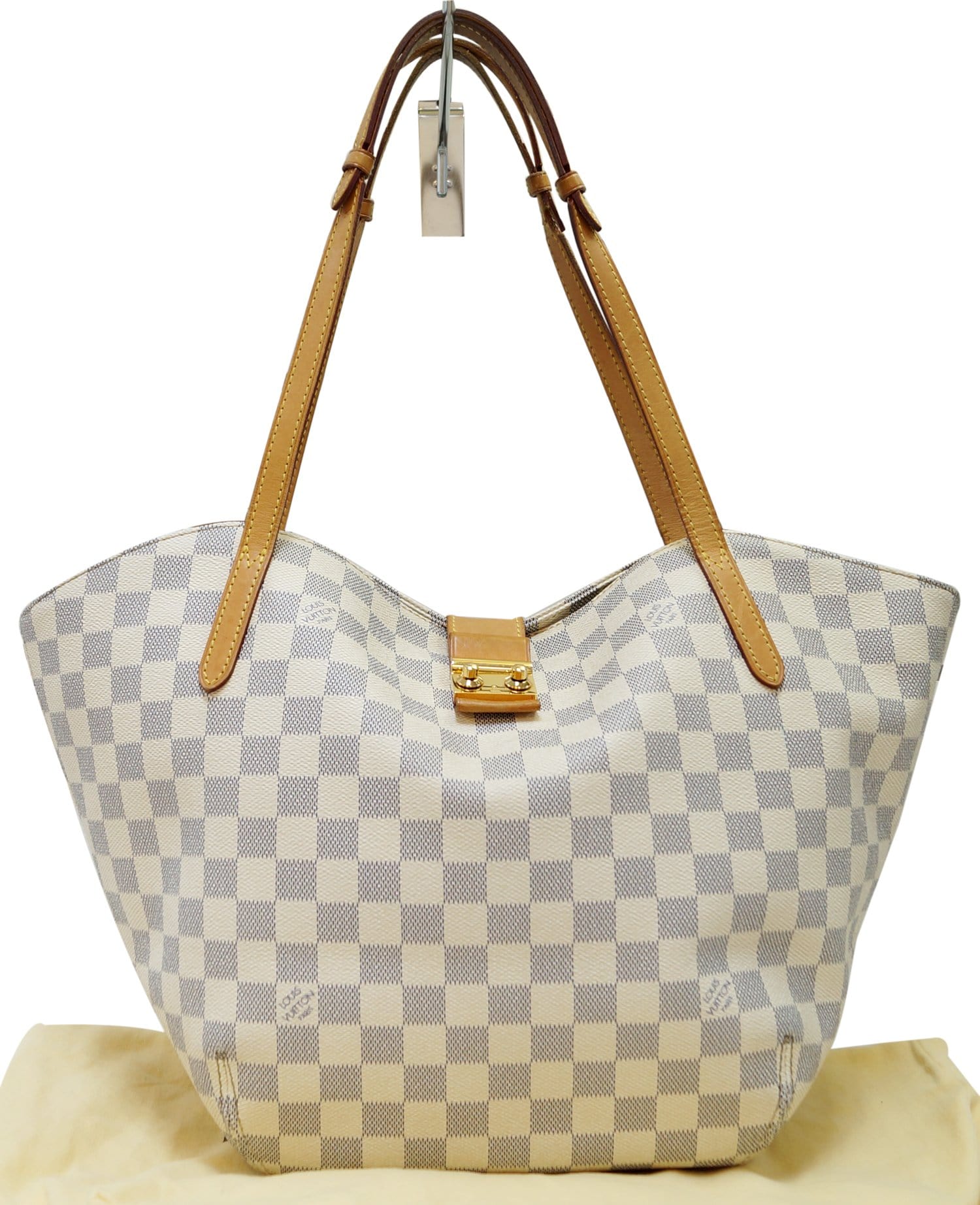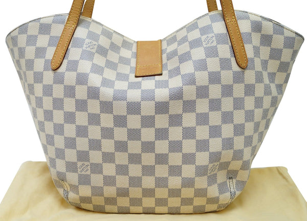 LOUIS VUITTON Damier Azur Salina PM Shoulder Bag. Salina PM tote is a newer creation that is a simply delightful! Charmingly compact, the Saling features long leather flat handles and supple Damier Azur canvas that would make this a perfect bag for a weekend get away or warm summer days.