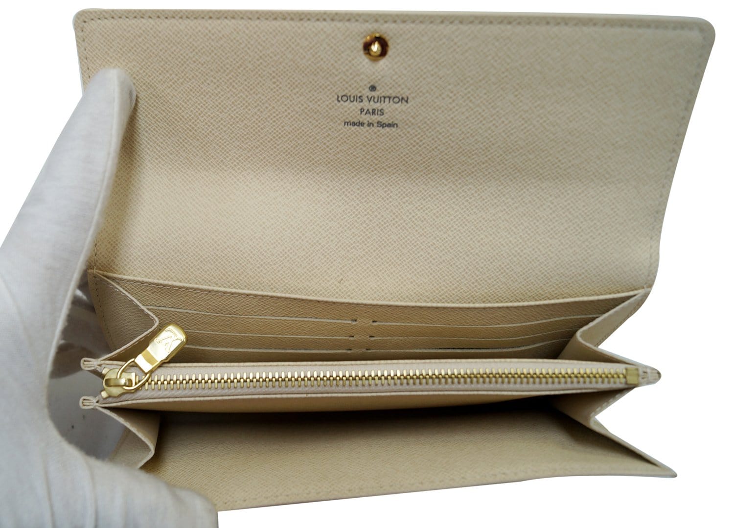This Louis Vuitton Damier Canvas Sarah Wallet is the most elegant way to organize your essentials like your bills, currency, credit cards and plenty of coins. This is the newer model of the Sarah, which has four card slots in front and six inside. This delightful piece will always be a popular and timeless classic.