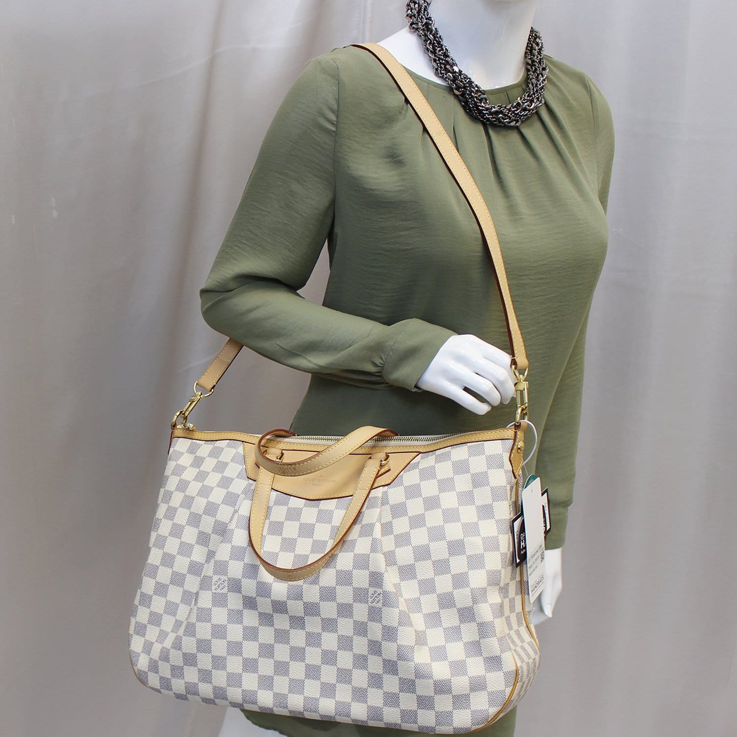 Damier Azur Siracusa GM White Shoulder Bag