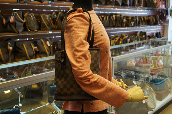 The Louis Vuitton Damier Canvas Marais Bucket Bag is a timeless piece that will never go out of style. It features a roomy interior with a zip pocket for securing essentials, and adjustable shoulder straps. Here's a perfect city bag for everyday use.