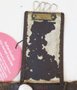 C Well Used: visible scratches, rubbed corners, leather tanning darkening. inside stains