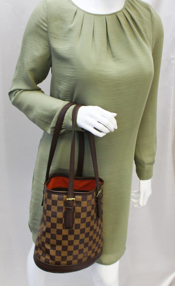 LOUIS VUITTON Damier Ebene Brown Marais Bucket Bag