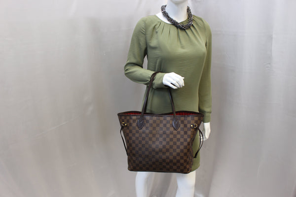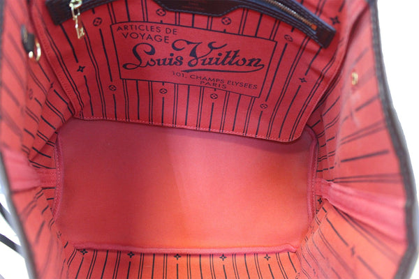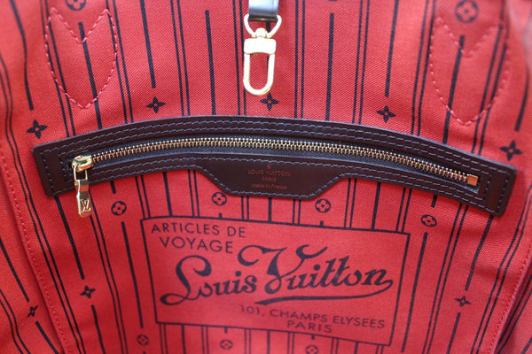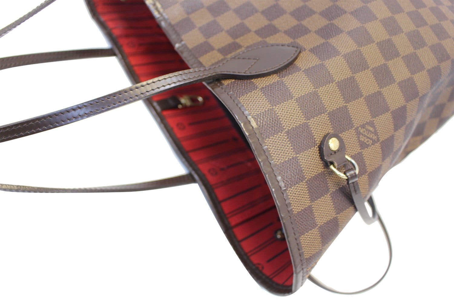 Louis Vuitton Damier Ebene Neverfull MM bag has fashion and functionality all rolled into one. This MM is the mid-size of the LV Neverfull family.