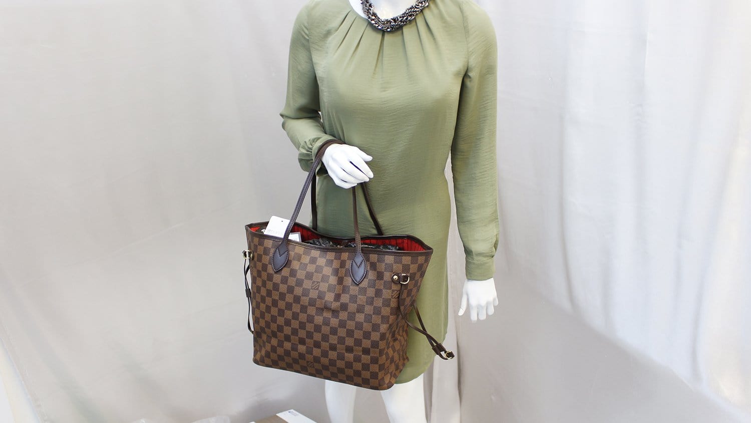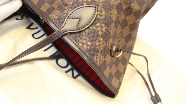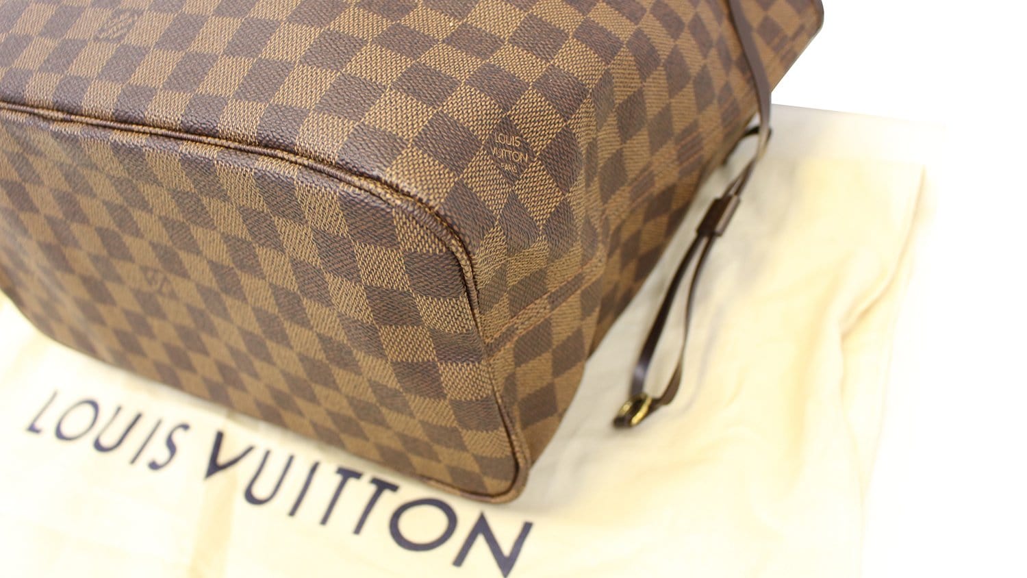 Louis Vuitton Damier Ebene Neverfull MM bag has fashion and functionality all rolled into one. This MM is the mid-size of the LV Neverfull family. Its roomy capacity, versatility and durability makes it perfect for taking to the office or going shopping.
