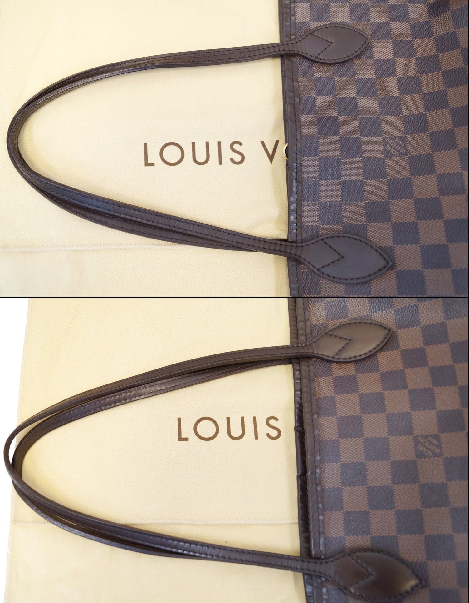 We inspect each bag thoroughly and if any flaws exist, we will make a note under the condition rating under the listing.