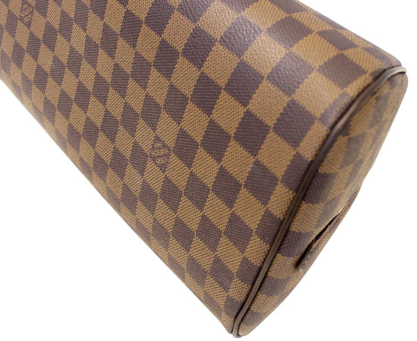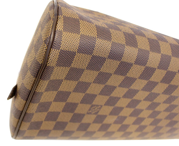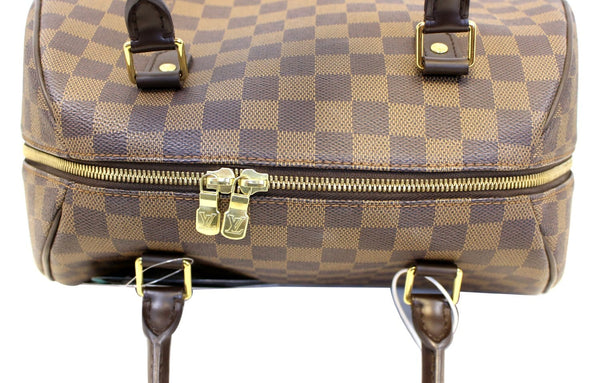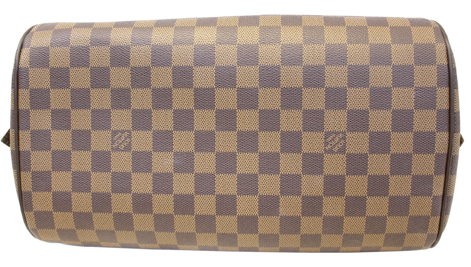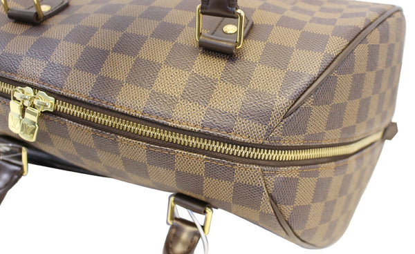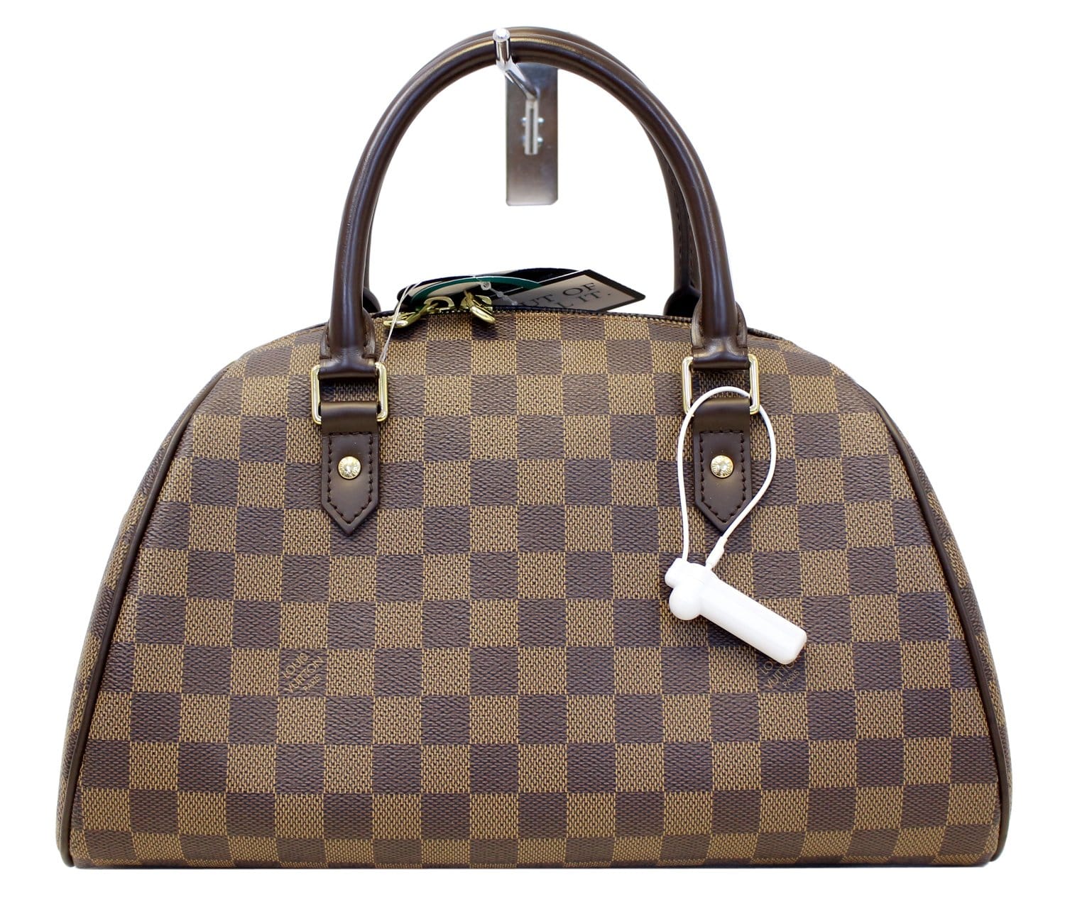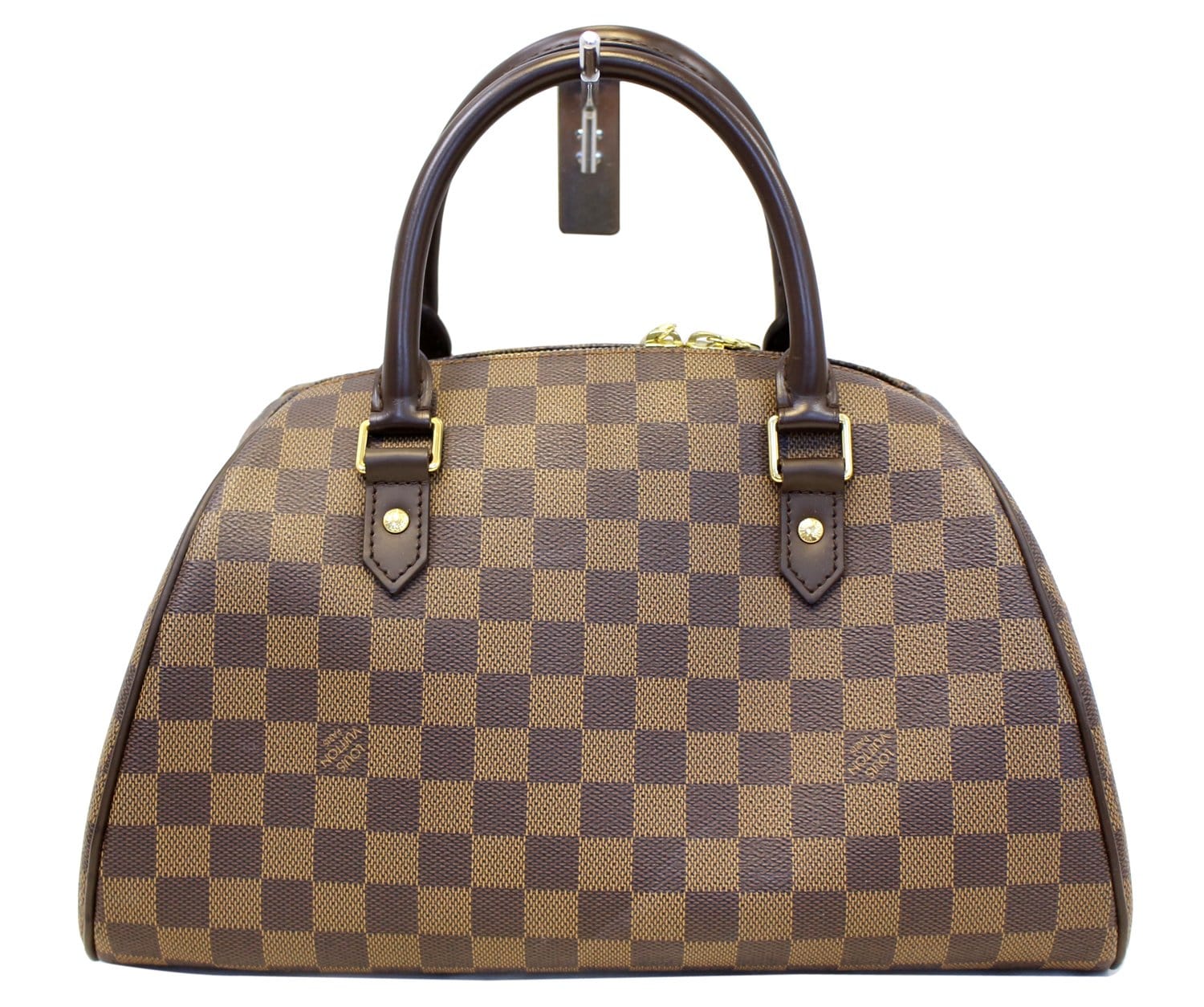 Louis Vuitton Damier Ebene Ribera MM: cute and chic. This versatile everyday bag features a roomy interior that's accessed through a large double zipped opening. The exterior shape features a striking profile that's an elegant alternative to the Louis Vuitton Speedy.
