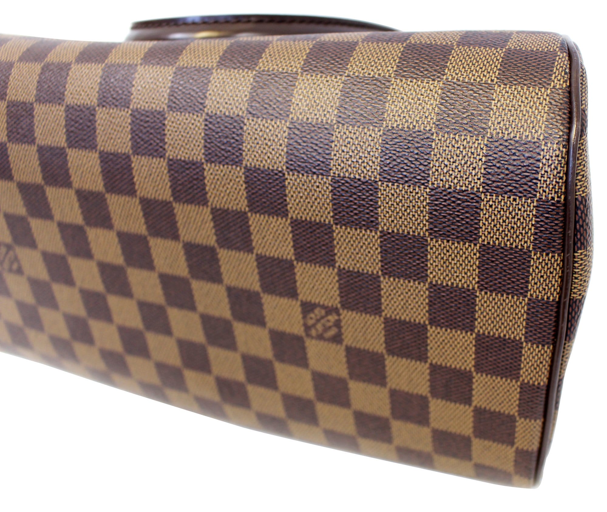 Louis Vuitton Damier Ebene Ribera MM: cute and chic. This versatile everyday bag features a roomy interior that's accessed through a large double zipped opening. The exterior shape features a striking profile that's an elegant alternative to the Louis Vuitton Speedy.