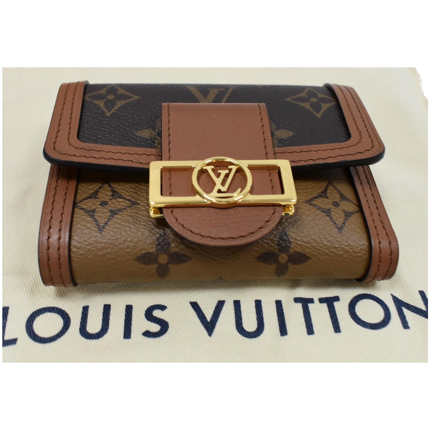 LOUIS VUITTON Dauphine Compact Monogram Reverse Canvas Wallet Brown