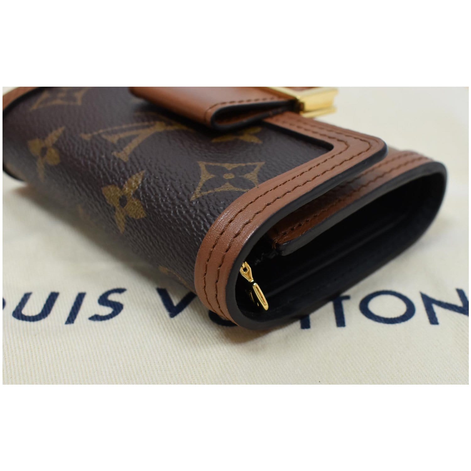 Dauphine Compact Monogram Reverse Canvas Wallet Brown