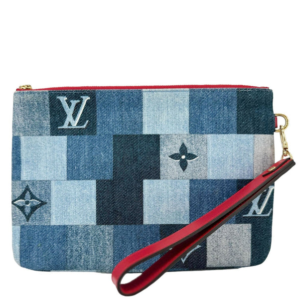LOUIS VUITTON City Denim Wristlet Pouch Blue Rouge