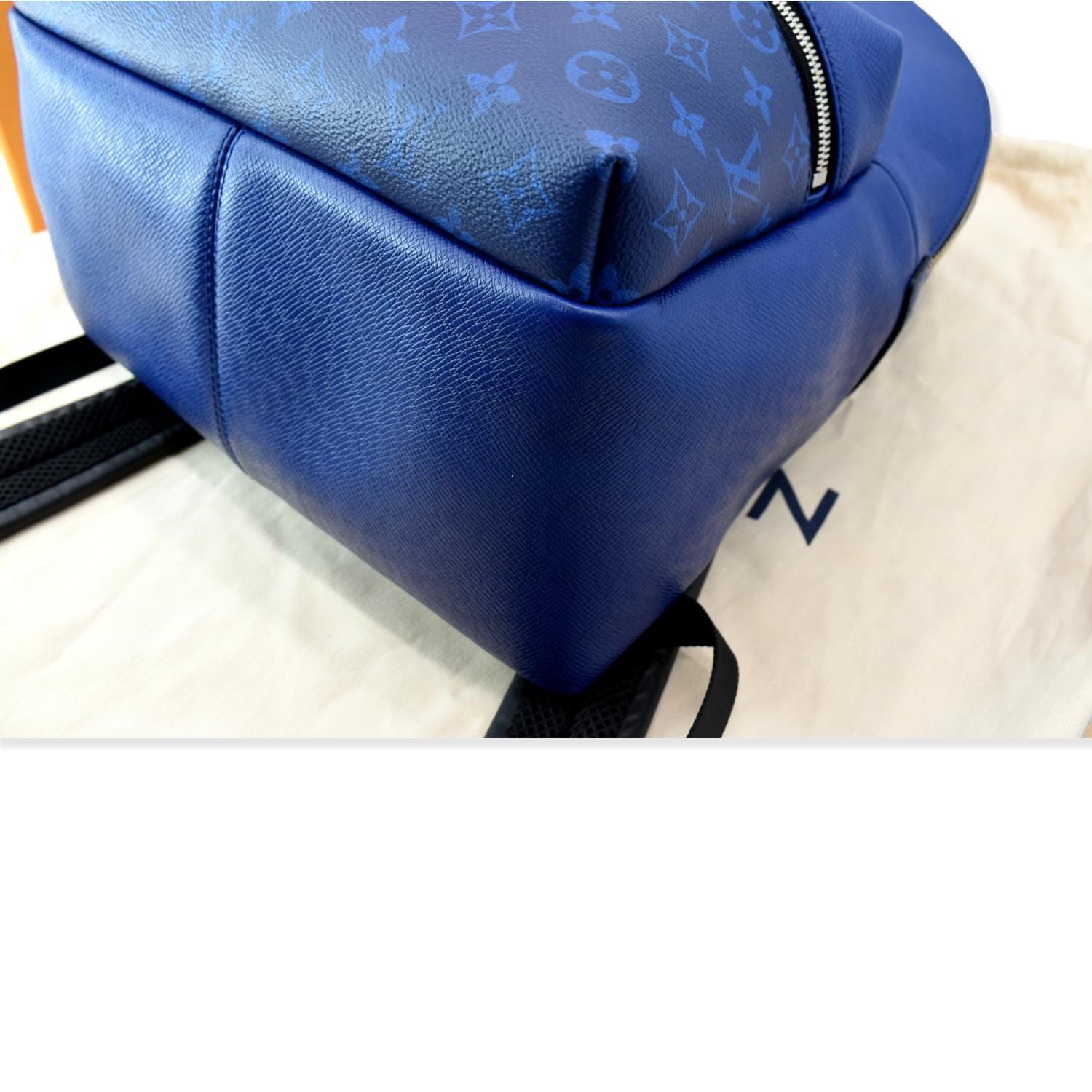 LOUIS VUITTON Discovery Taiga Monogram Leather Backpack Blue