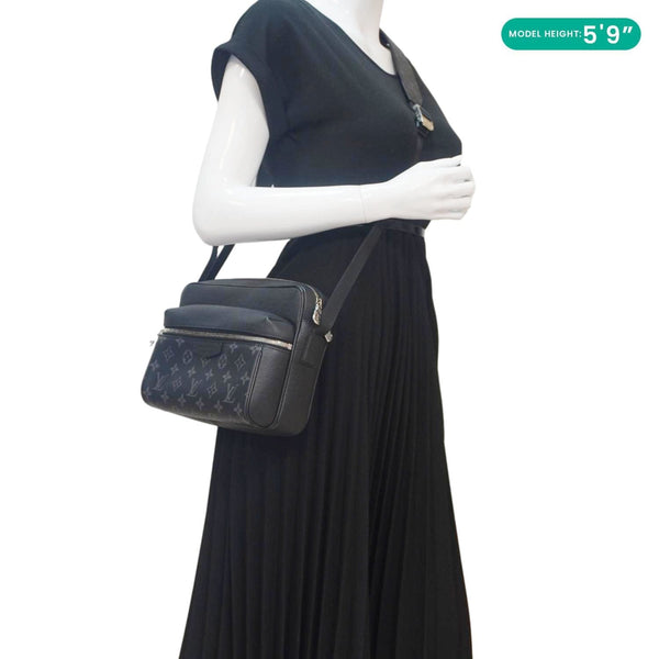 The LOUIS VUITTON Outdoor Monogram Eclipse Messenger Bag in black features a sleek, modern design with the brand's iconic Monogram pattern. Its durable construction and functional style make it the perfect blend of luxury and practicality.