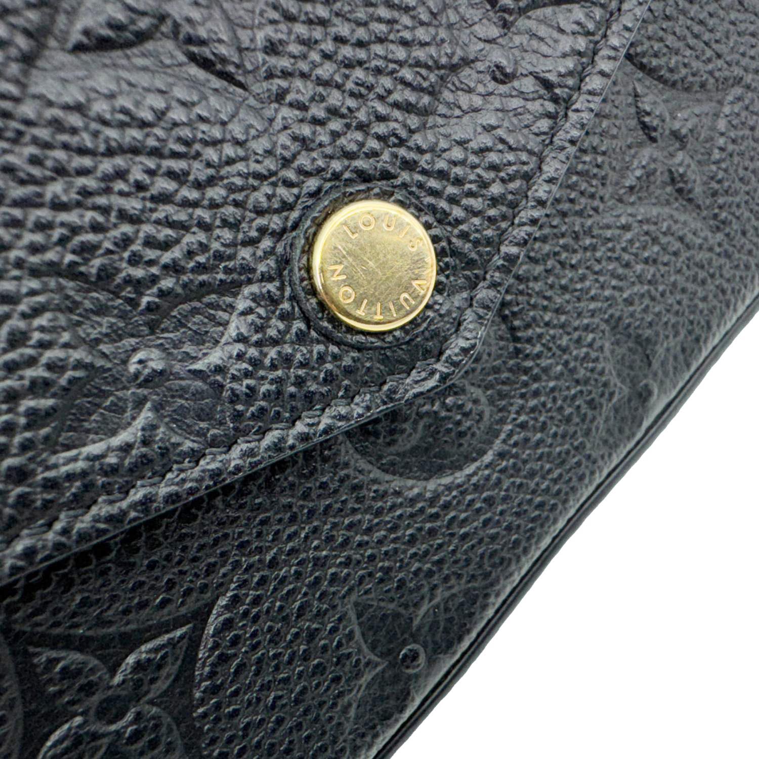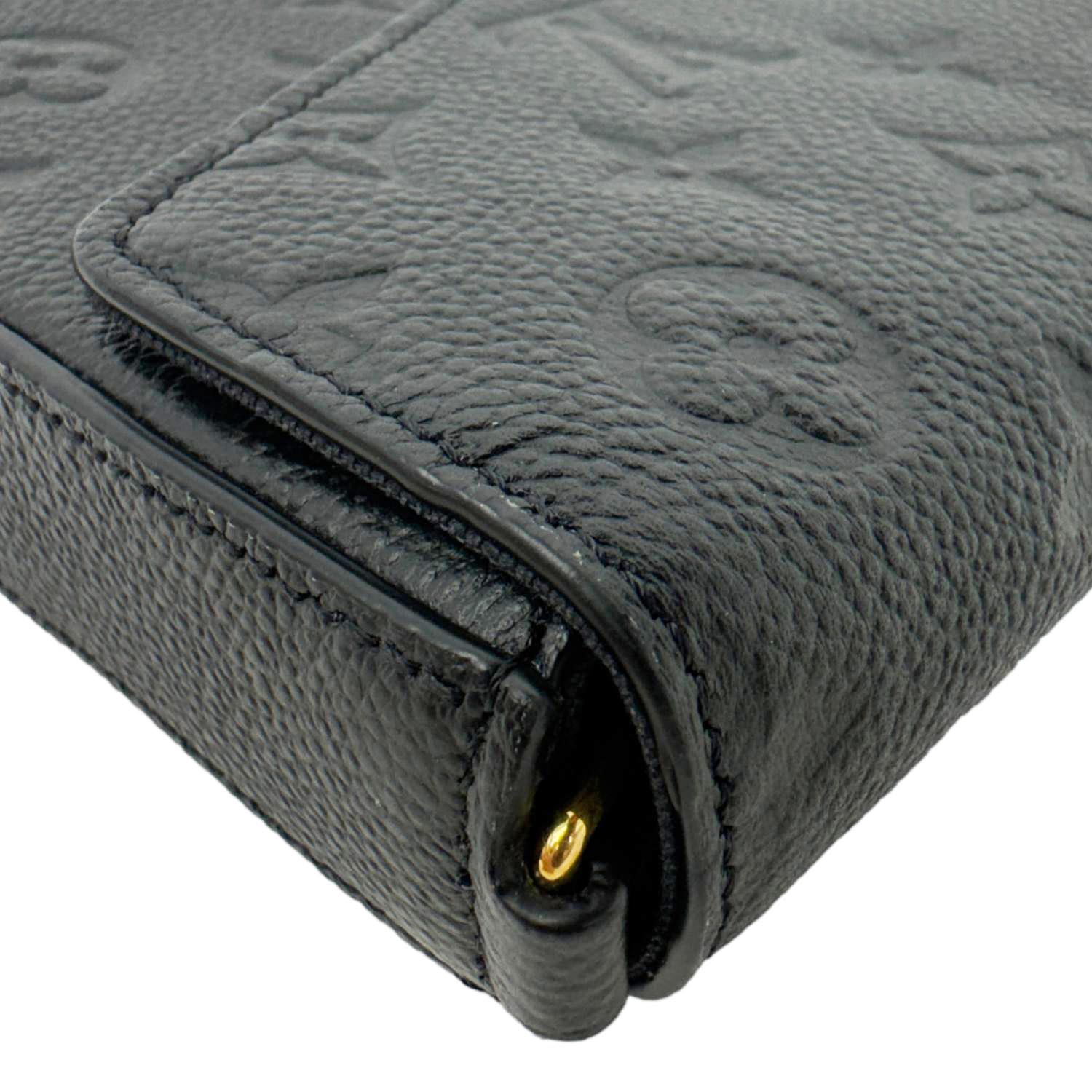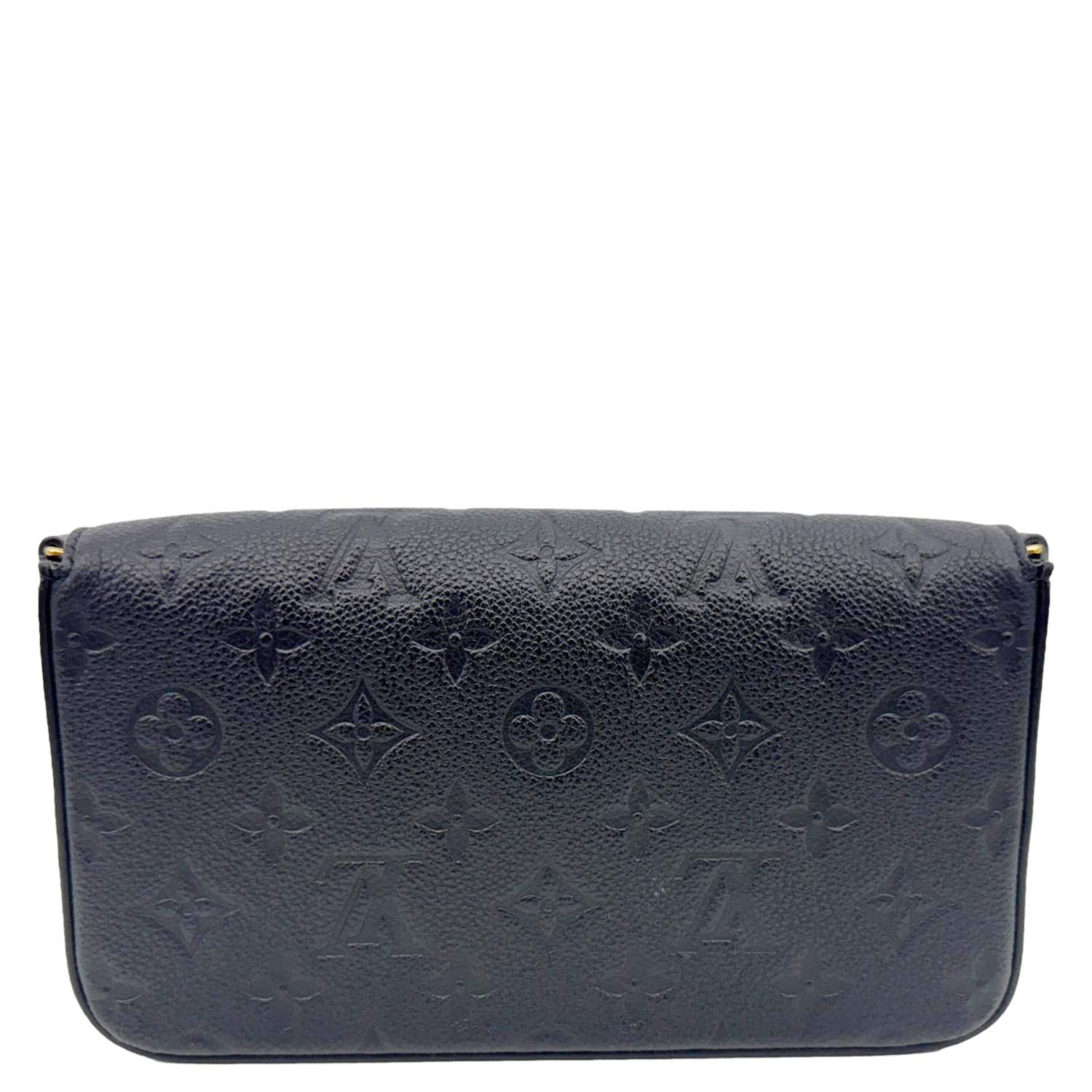 LOUIS VUITTON Felicie Pochette Monogram Empreinte Crossbody Bag in Black features embossed monogram leather with gold-tone hardware. This versatile and compact bag includes removable inserts and a chain strap for day-to-night elegance.