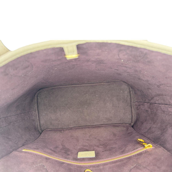 The Louis Vuitton Neverfull MM in Empreinte Leather showcases a supple beige tone with embossed monogram detailing. Spacious yet refined, it’s perfect for both everyday use and elegant outings.