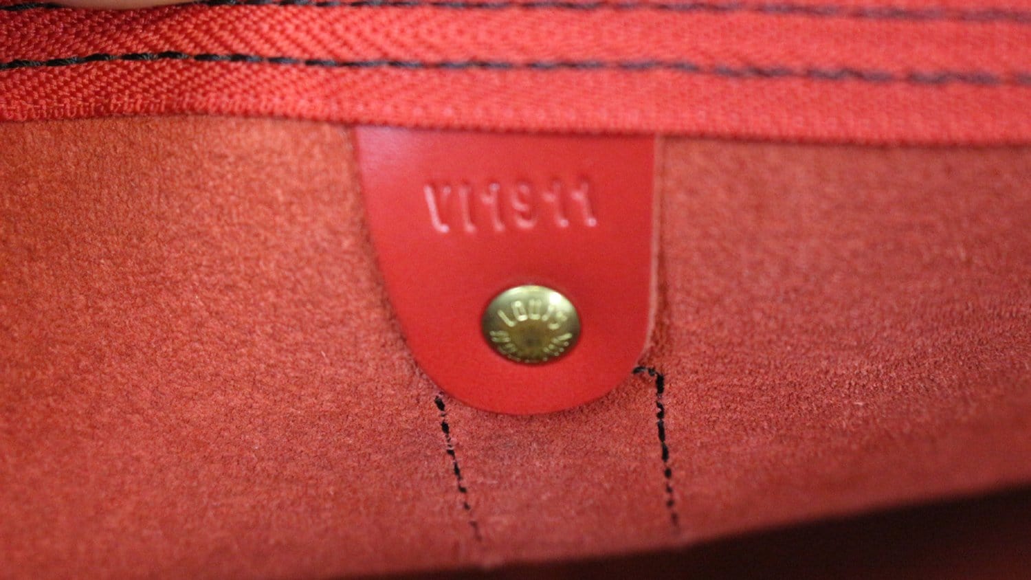 Louis Vuitton Red Epi Leather Keepall 45 is perfect for travel or weekend getaway. The Keepall 45 is the smallest version of the Keepall family, with its ultra-spacious interior and the capability of folding flat, this bag is versatile as an additional travel piece. The Keepall 45 in Epi leather is rare and unique, which measures to approximately 47cm, which makes it slightly larger than typical Keepall 45s.
