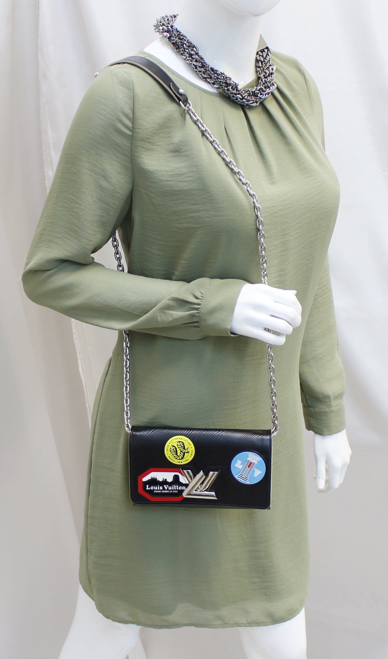 LOUIS VUITTON Epi World Tour Twist Chain Wallet Noir Black Crossbody - Last Call