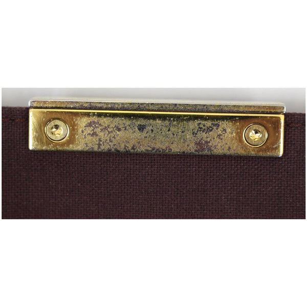 LOUIS VUITTON Favorite PM Monogram Canvas Crossbody Bag. This bag features a small Louis Vuitton gold tone plaque with a removable leather strap and a golden chain for multiple carrying options.