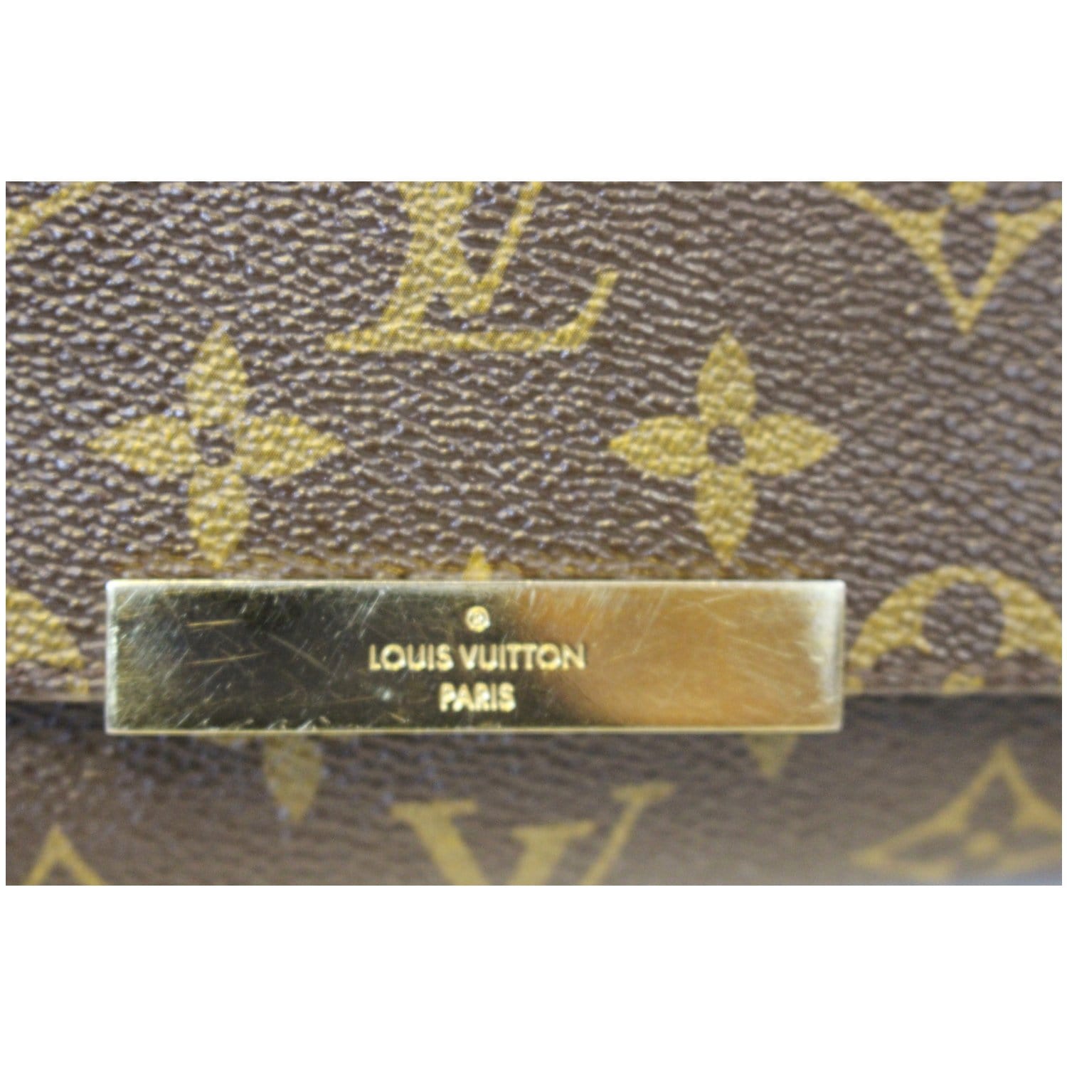 LOUIS VUITTON Favorite PM Monogram Canvas Crossbody Bag. This bag features a small Louis Vuitton gold tone plaque with a removable leather strap and a golden chain for multiple carrying options.