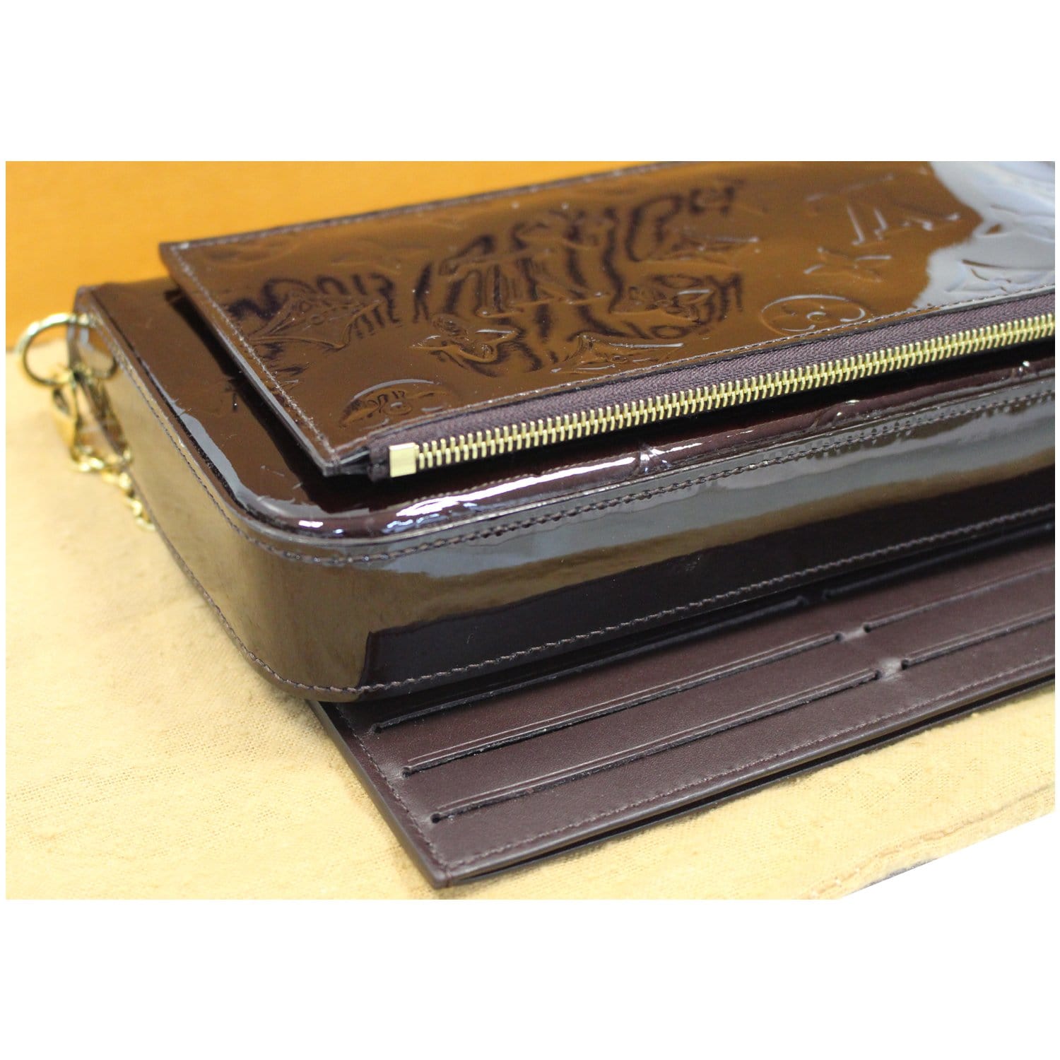 LOUIS VUITTON Felicie Pochette Vernis Crossbody Bag Amarante