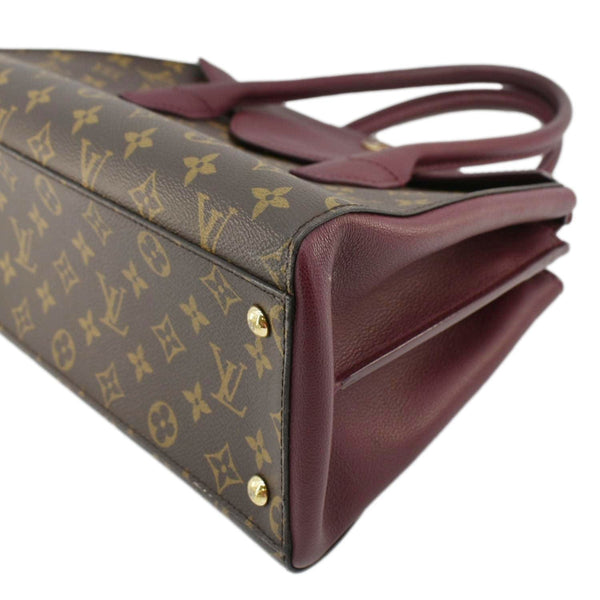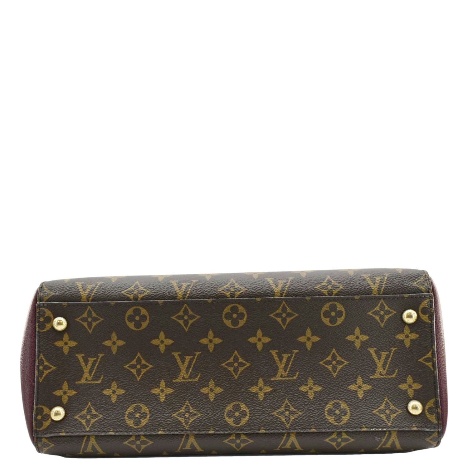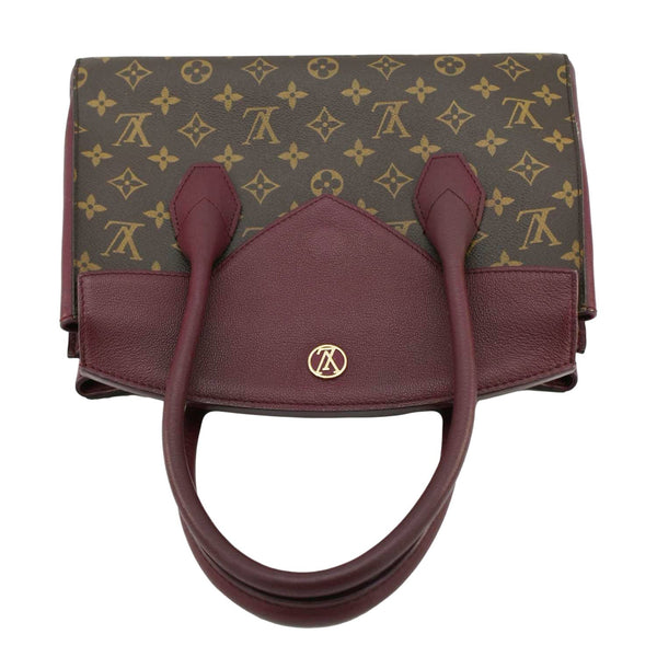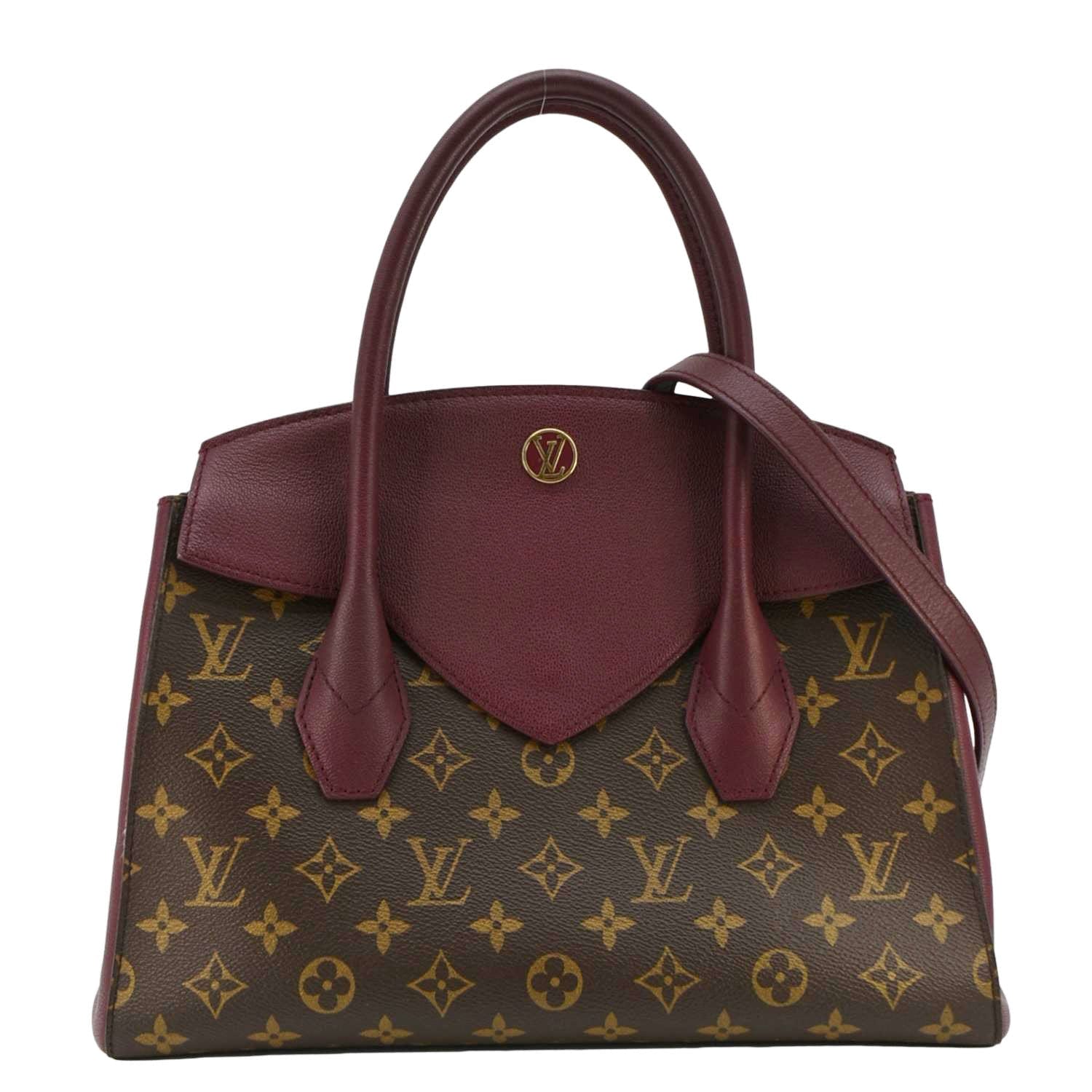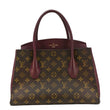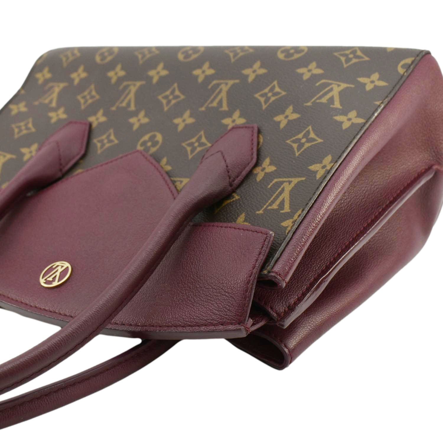 The Louis Vuitton Florine Shoulder Bag in Monogram canvas and burgundy leather features a refined design with a signature LV twist. Its structured shape, top handle, and burgundy leather tie accent make it an elegant yet functional choice.