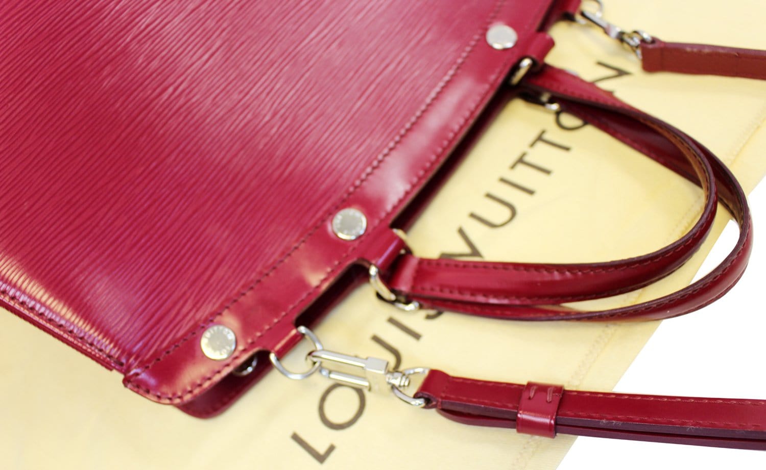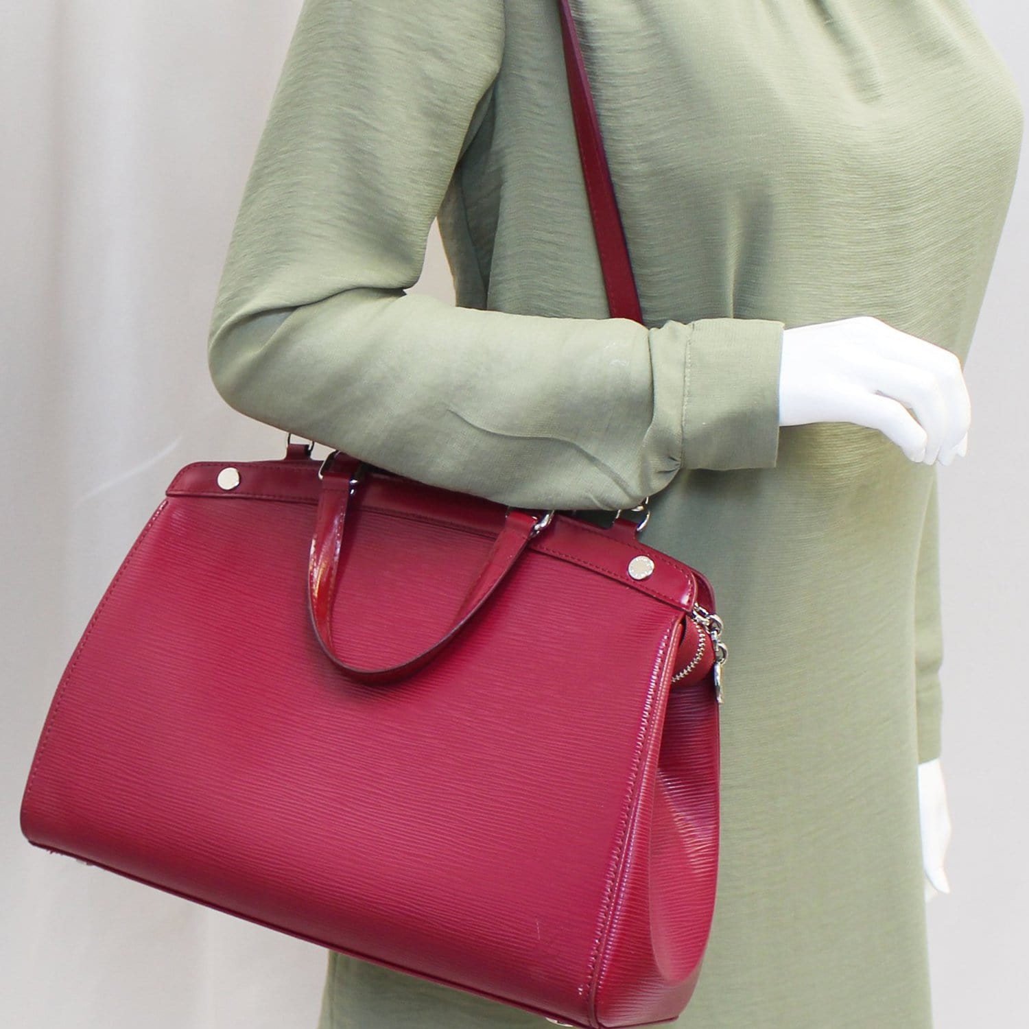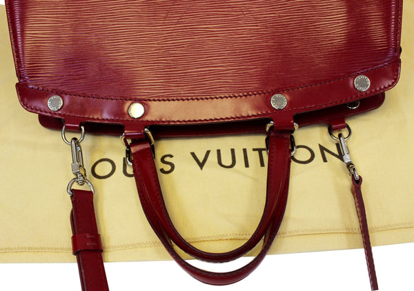 Louis Vuitton Epi Leathe Brea MM Bag is the medium version of the Brea collection and is a feminine and modern interpretation of the classic Doctor's bag. It features top handles for handheld use and several pockets inside for plenty of storage.