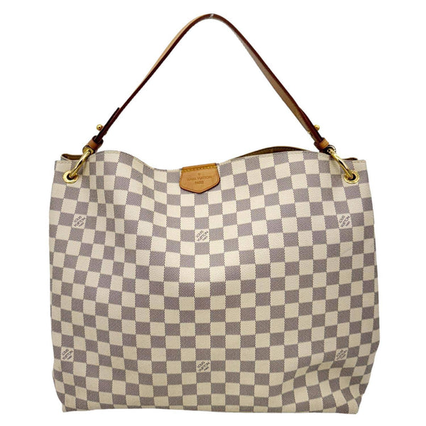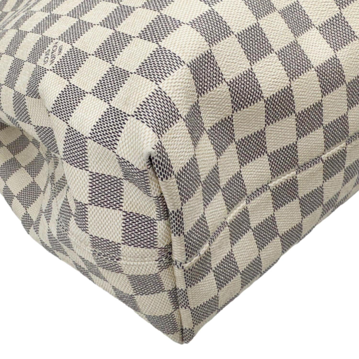 The LOUIS VUITTON Graceful MM in Damier Azur Canvas offers a lightweight, slouchy hobo silhouette with a spacious interior and natural leather trim. Elegant in white tones, it’s perfect for casual chic, everyday wear.