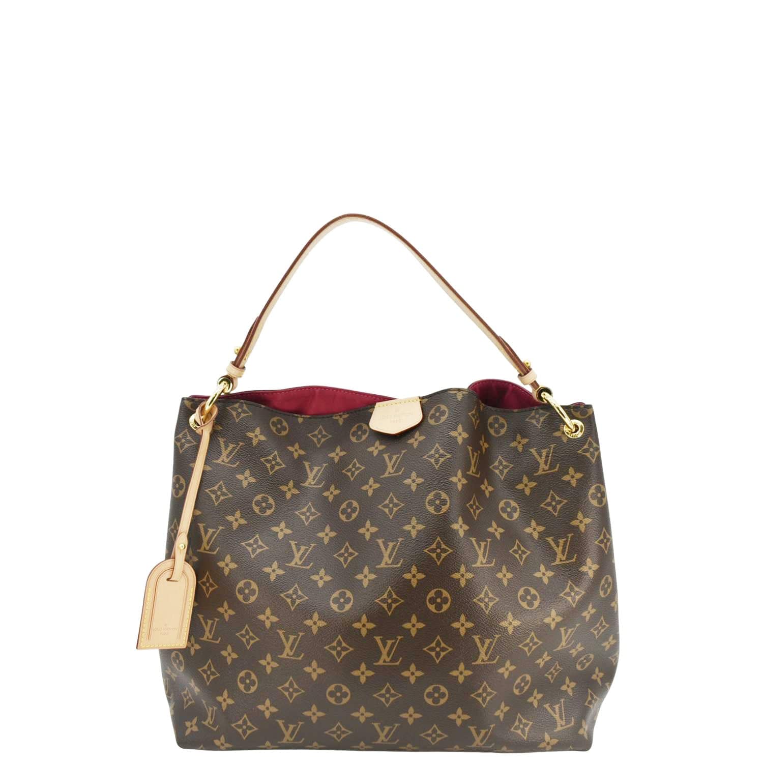 The LOUIS VUITTON Graceful MM in Monogram Canvas is a chic brown shoulder bag, featuring a slouchy, lightweight design with the signature LV monogram pattern. Its roomy interior and comfortable shoulder strap make it a stylish and practical choice for everyday elegance.
