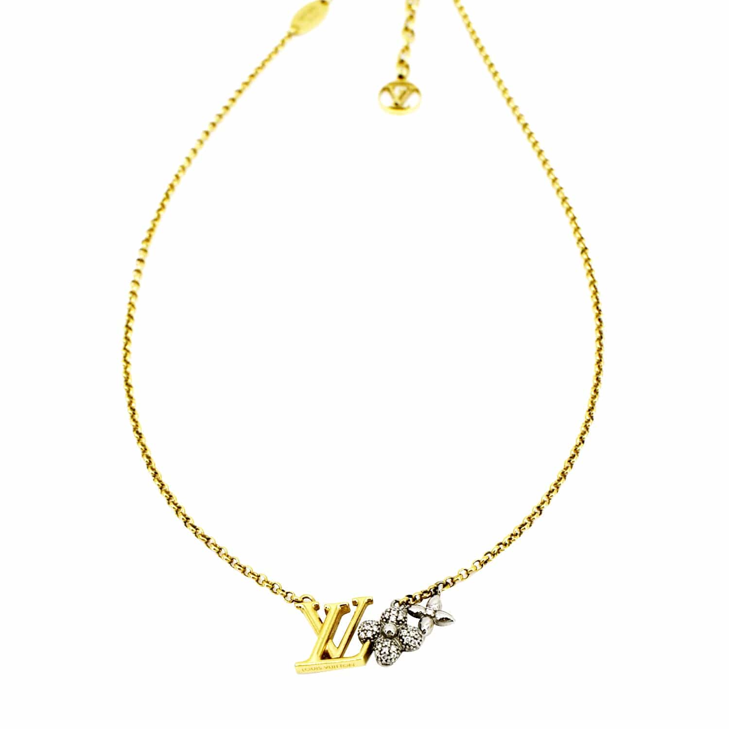 LV Gram Metal Zircorns Pendant Necklace Gold