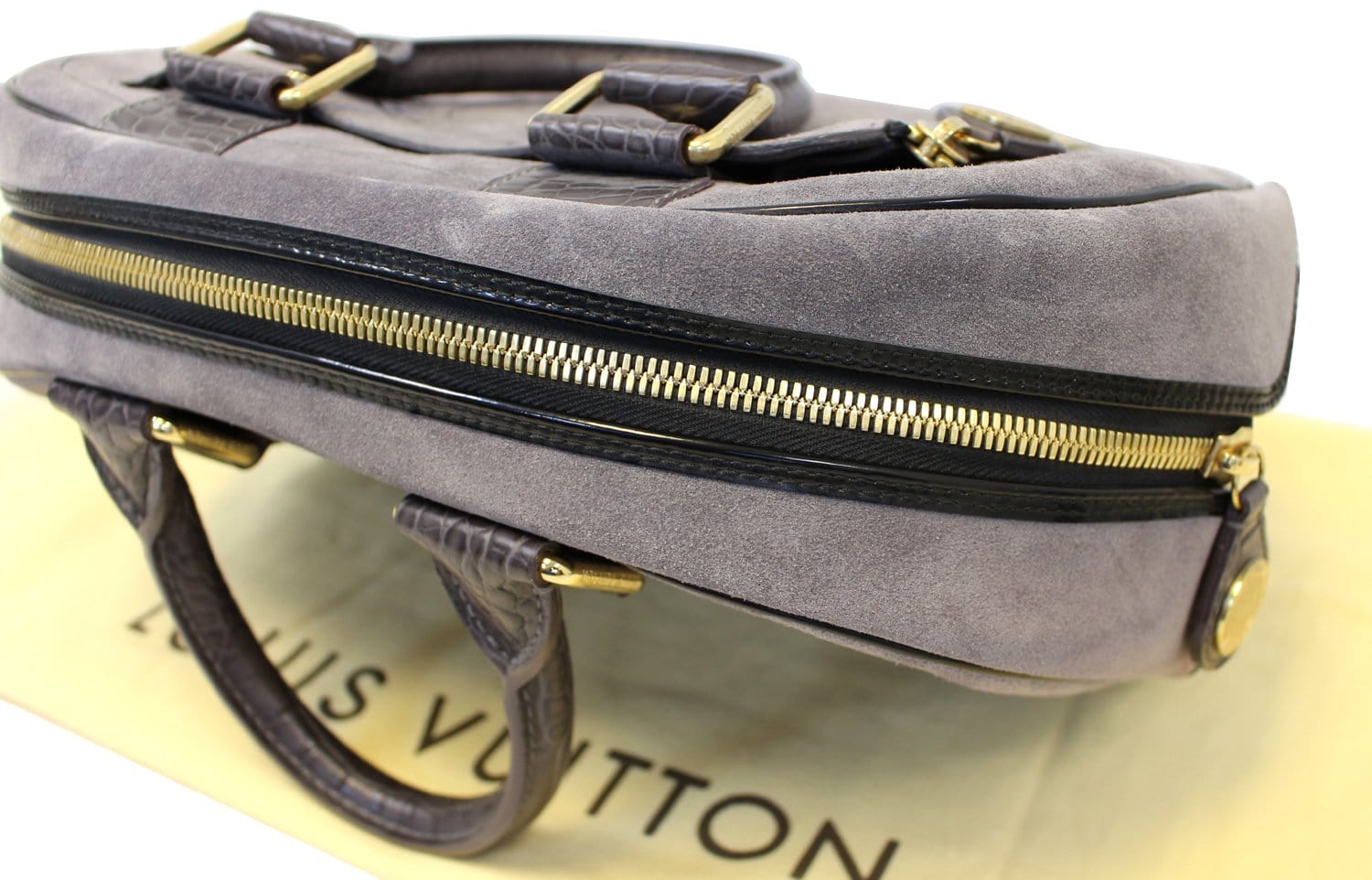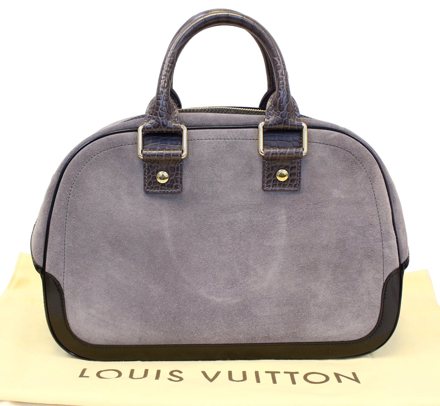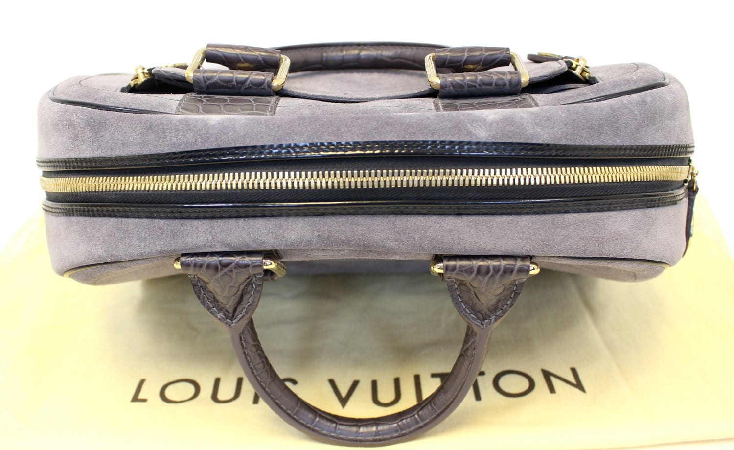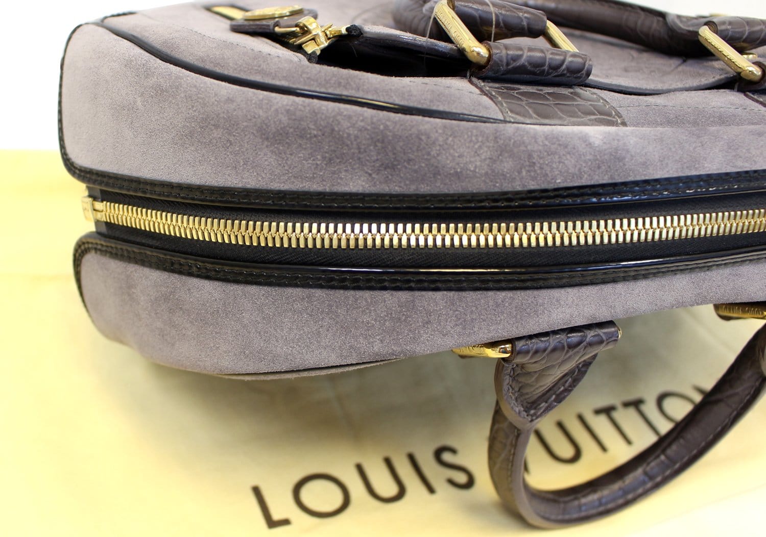 Louis Vuitton Limited Edition Grey Suede Havane Stamped Trunk GM Bag truly desirable. From the Fall 2006 Runway collection, this fabulous bag features gorgeous suede, patent leather and printed alligator handles. There is also a "Trunks and Bags" stamped circle logo on the front. A must-have collectible for Louis Vuitton lovers as there were only 1200 sold in the US and is coveted by celebrities such as Kim Kardashian.