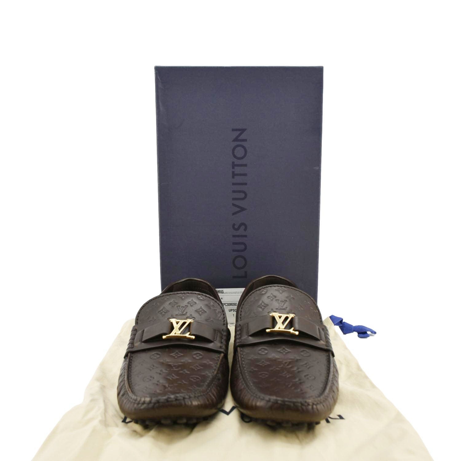 LOUIS VUITTON Hockenheim Moccasin Leather Loafers in Brown offer timeless elegance and comfort in size US 9. Crafted from premium leather, these loafers are perfect for any sophisticated wardrobe.