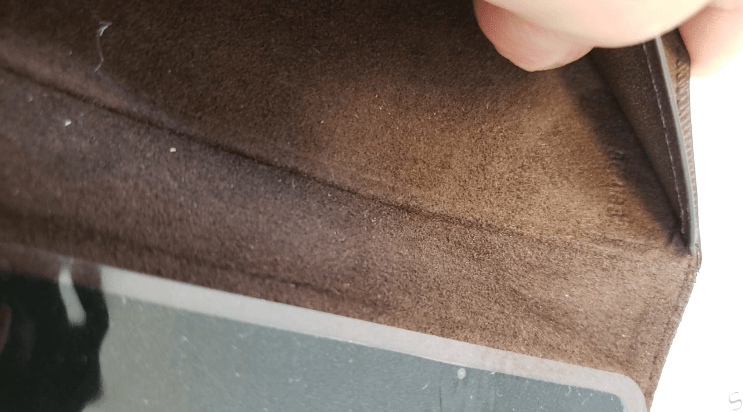 Visible Scratches, rubbed corners, leather tanning darkening. inside stains |