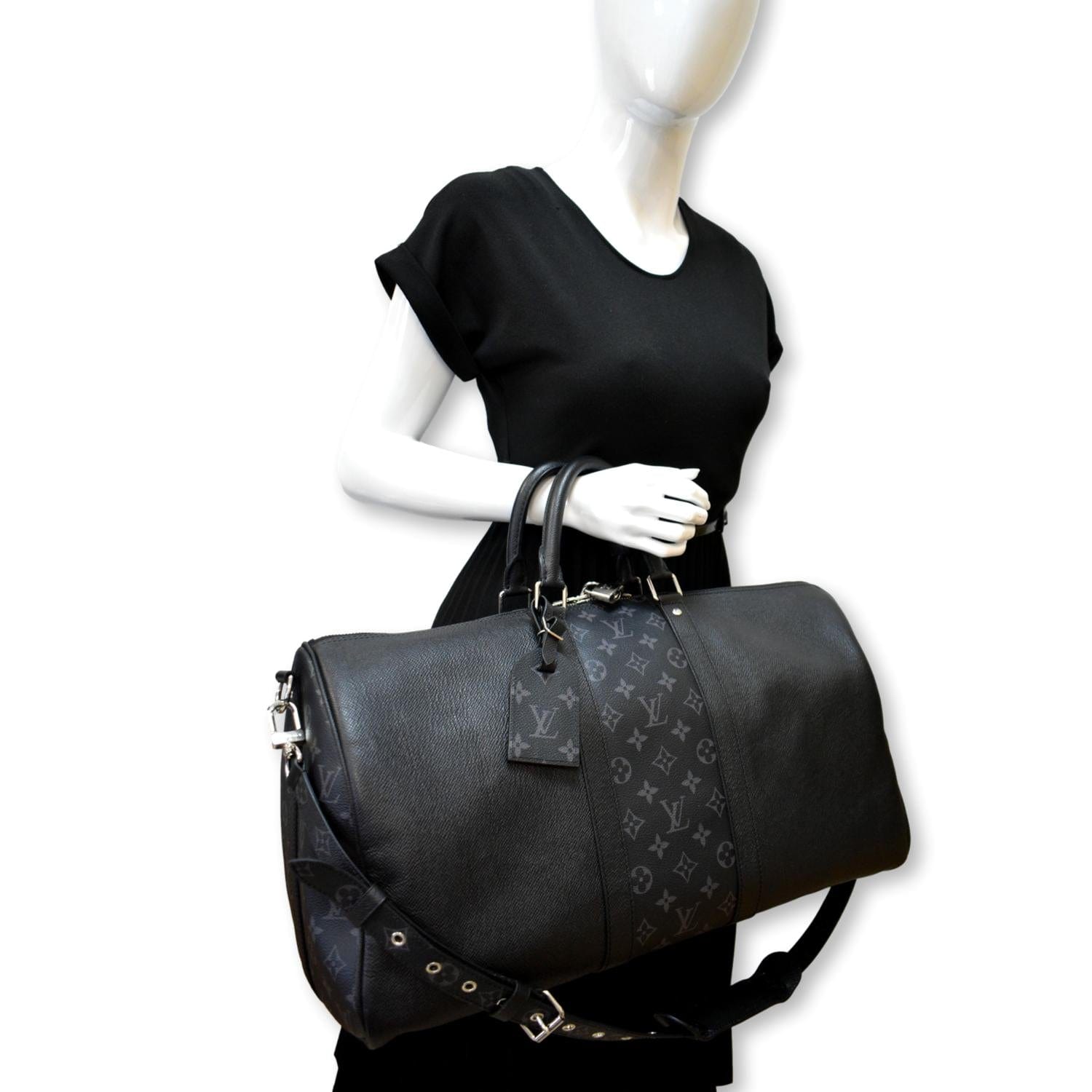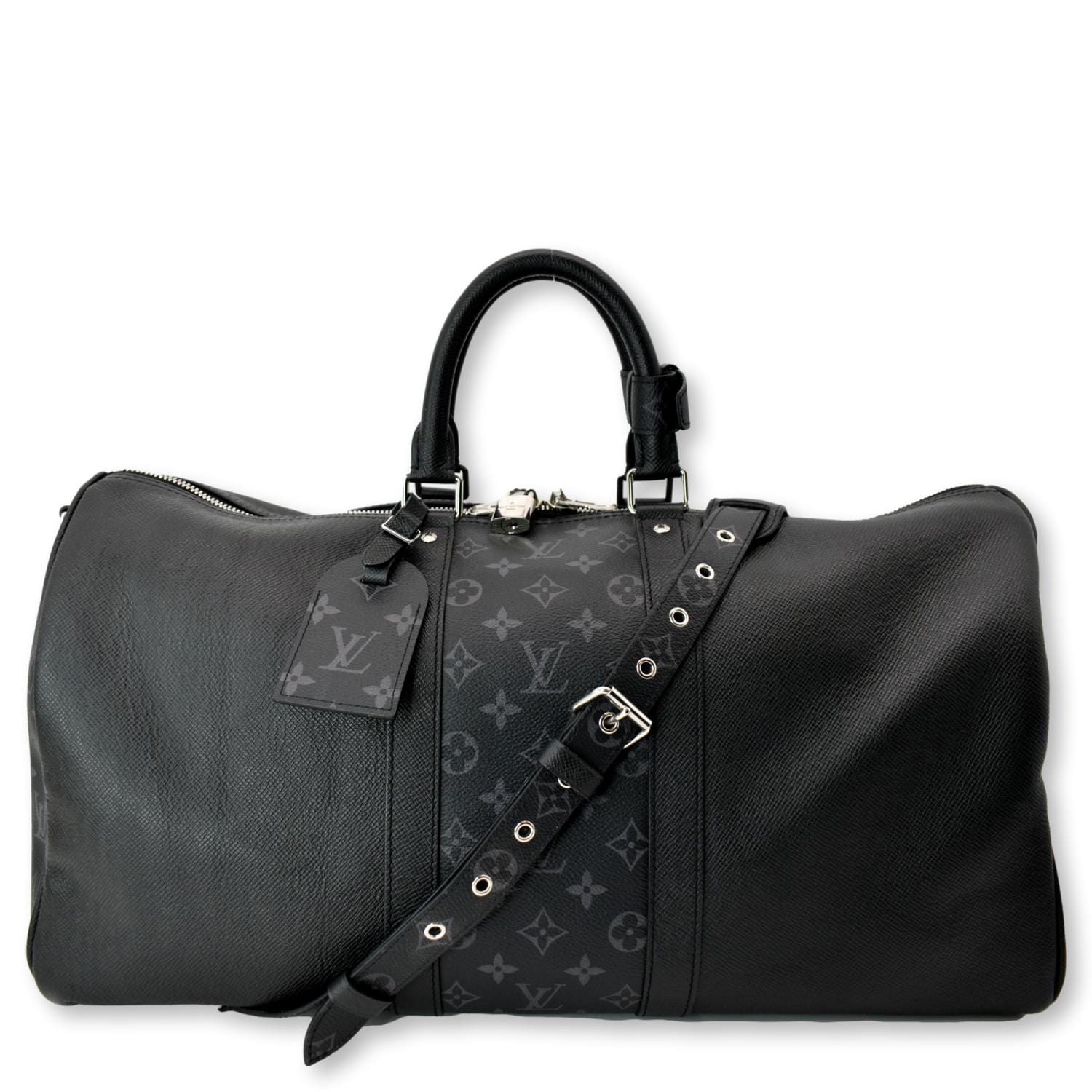 LOUIS VUITTON Keepall 50 Bandouliere Monogram Taiga Leather Travel Bag Black - Hot Deals