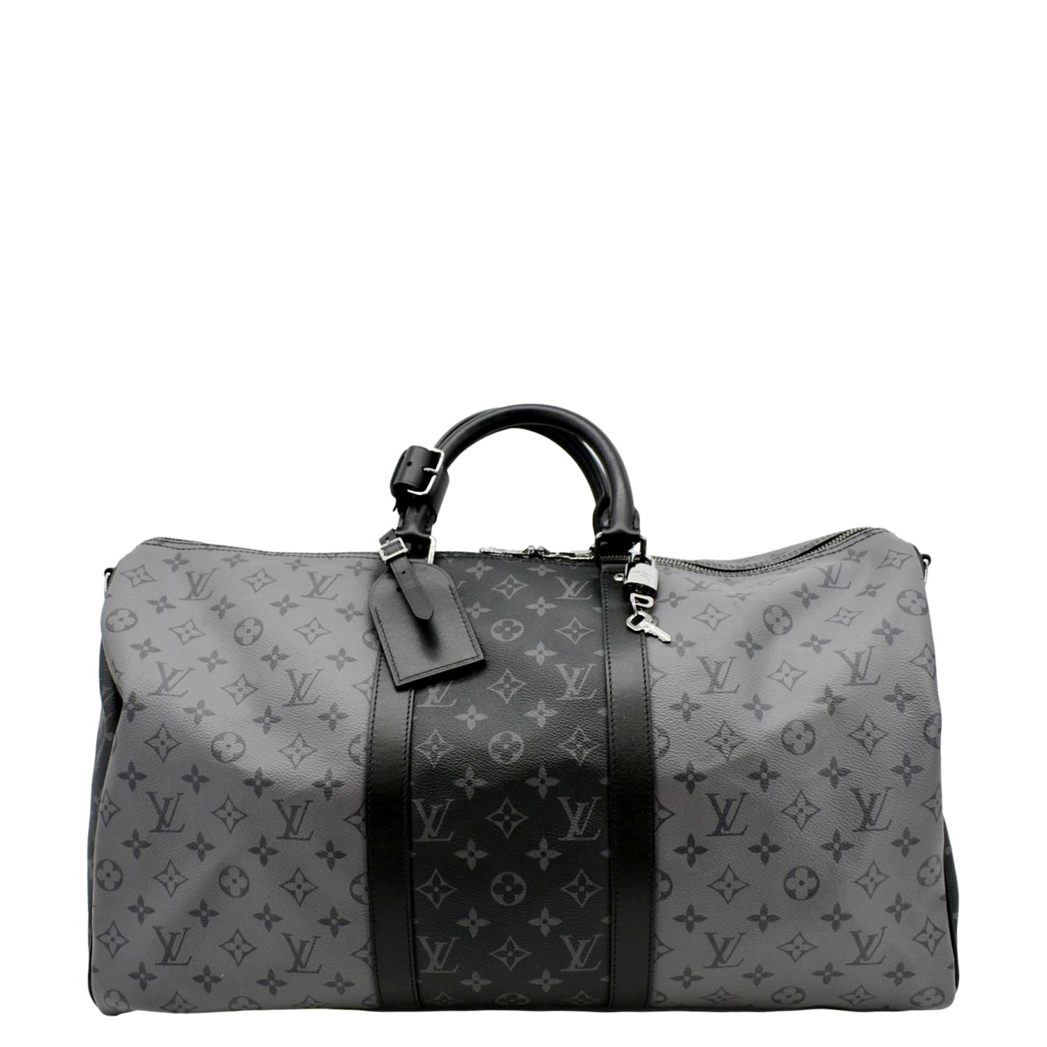 LOUIS VUITTON Keepall 50 Bandouliere Monogram Eclipse Travel Bag Black