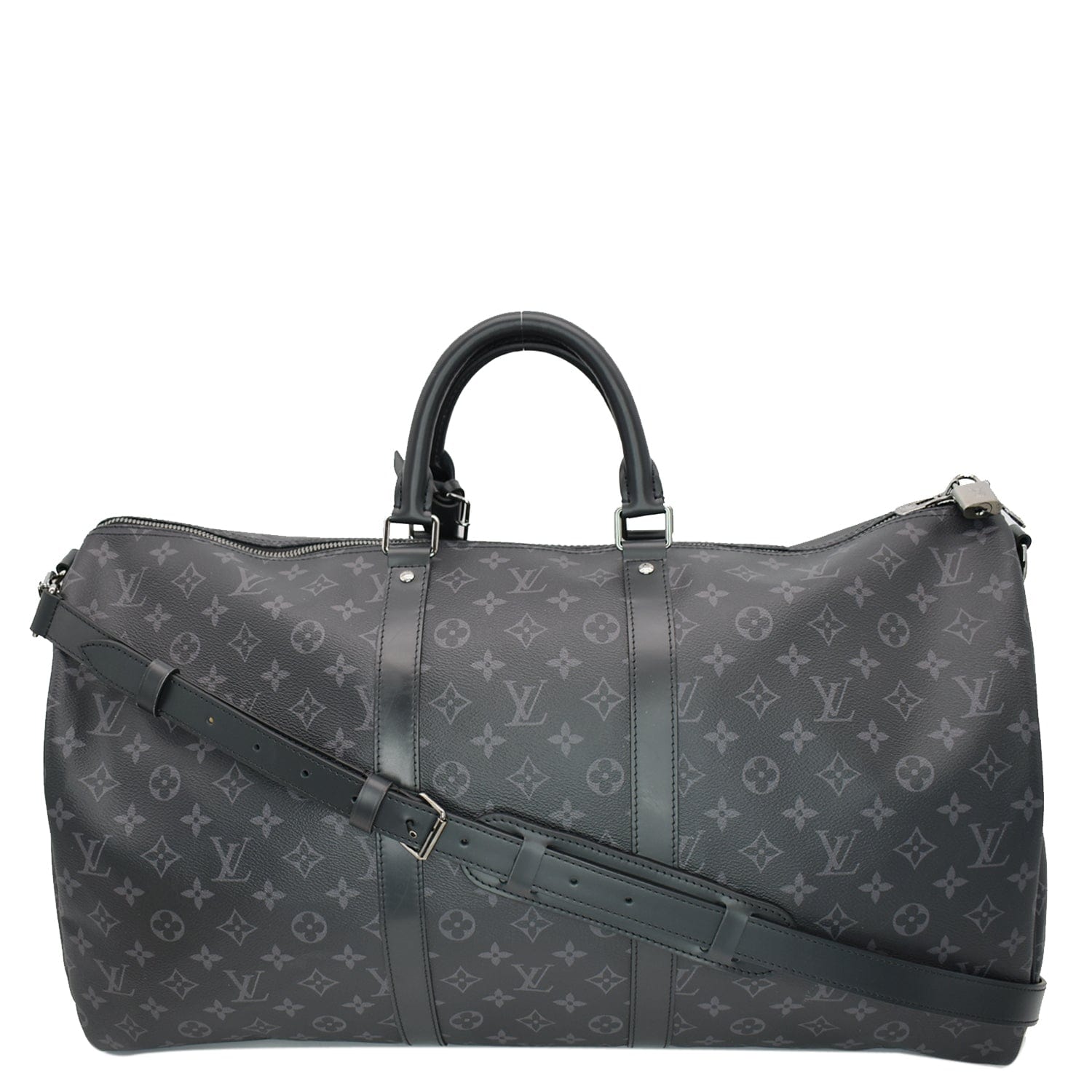 LOUIS VUITTON Keepall 55 Bandouliere Monogram Eclipse Travel Bag Black