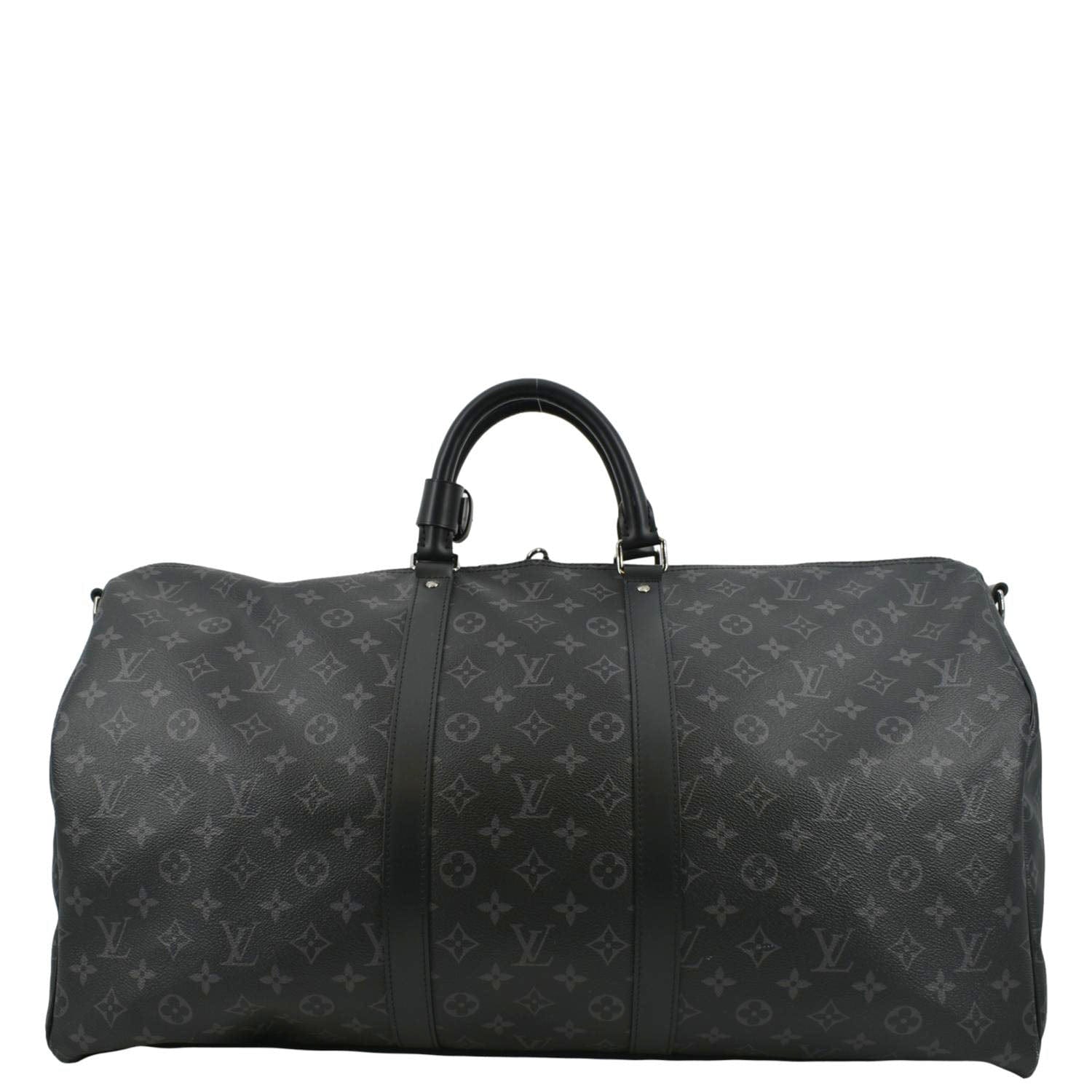 LOUIS VUITTON Keepall 55 Bandouliere Monogram Eclipse Travel Bag Black