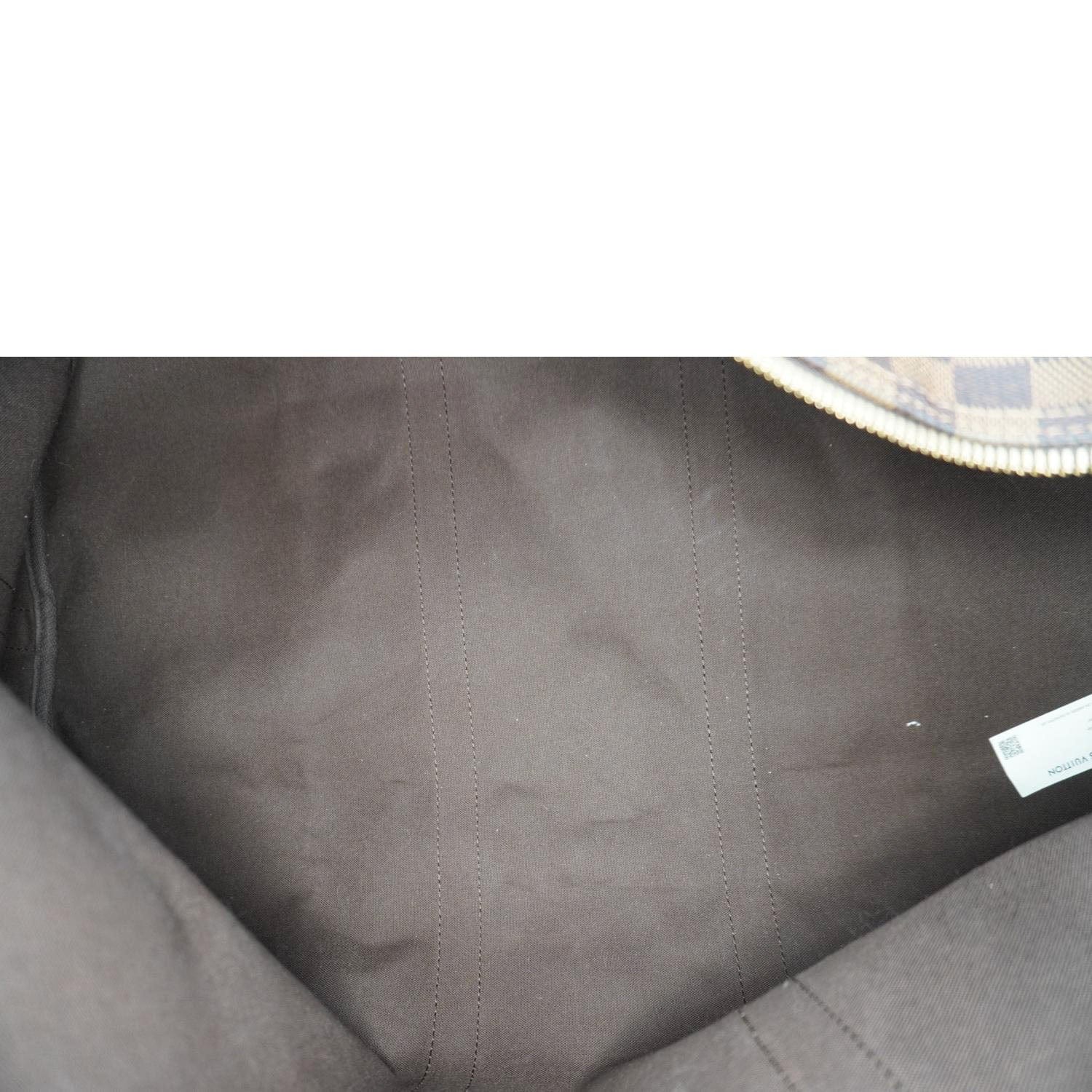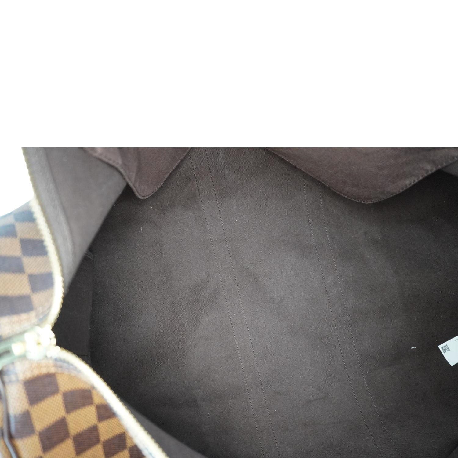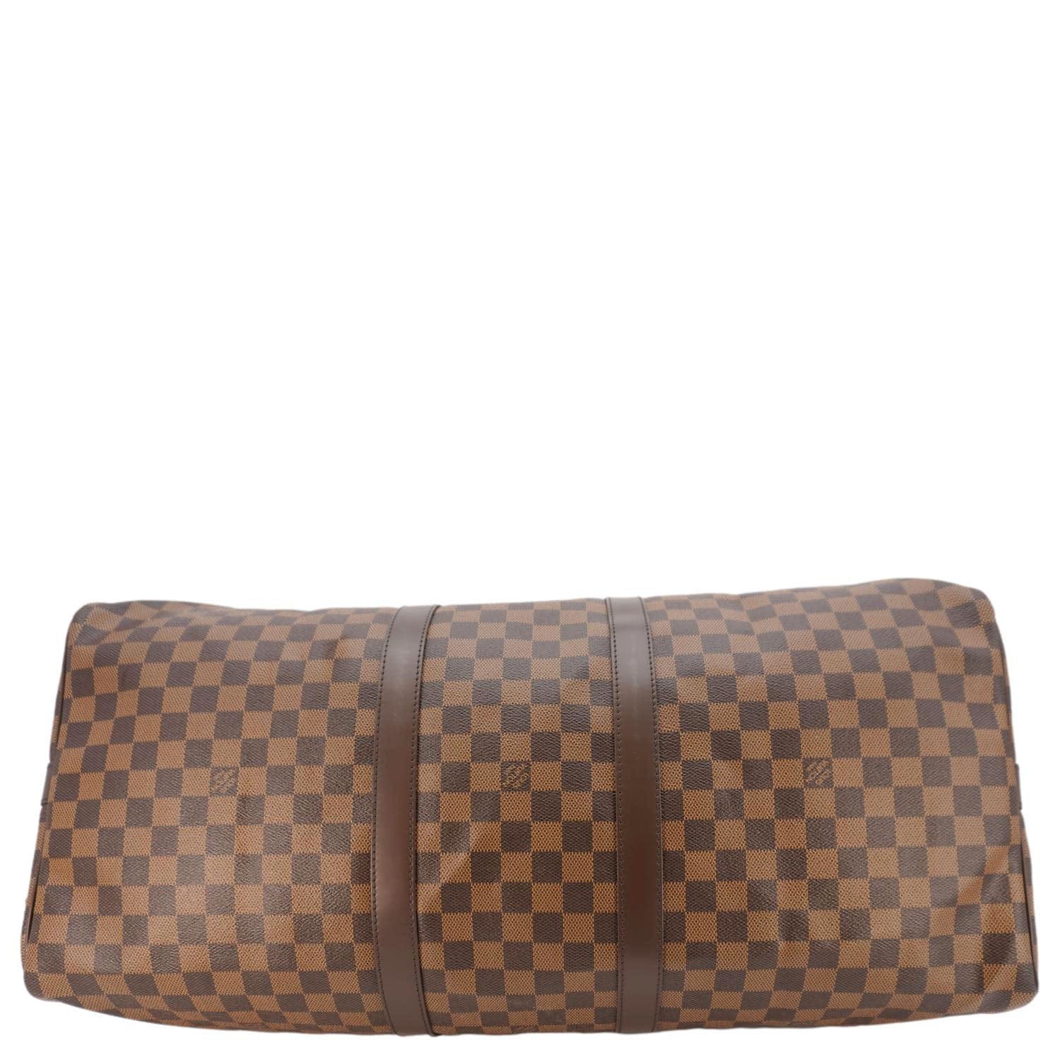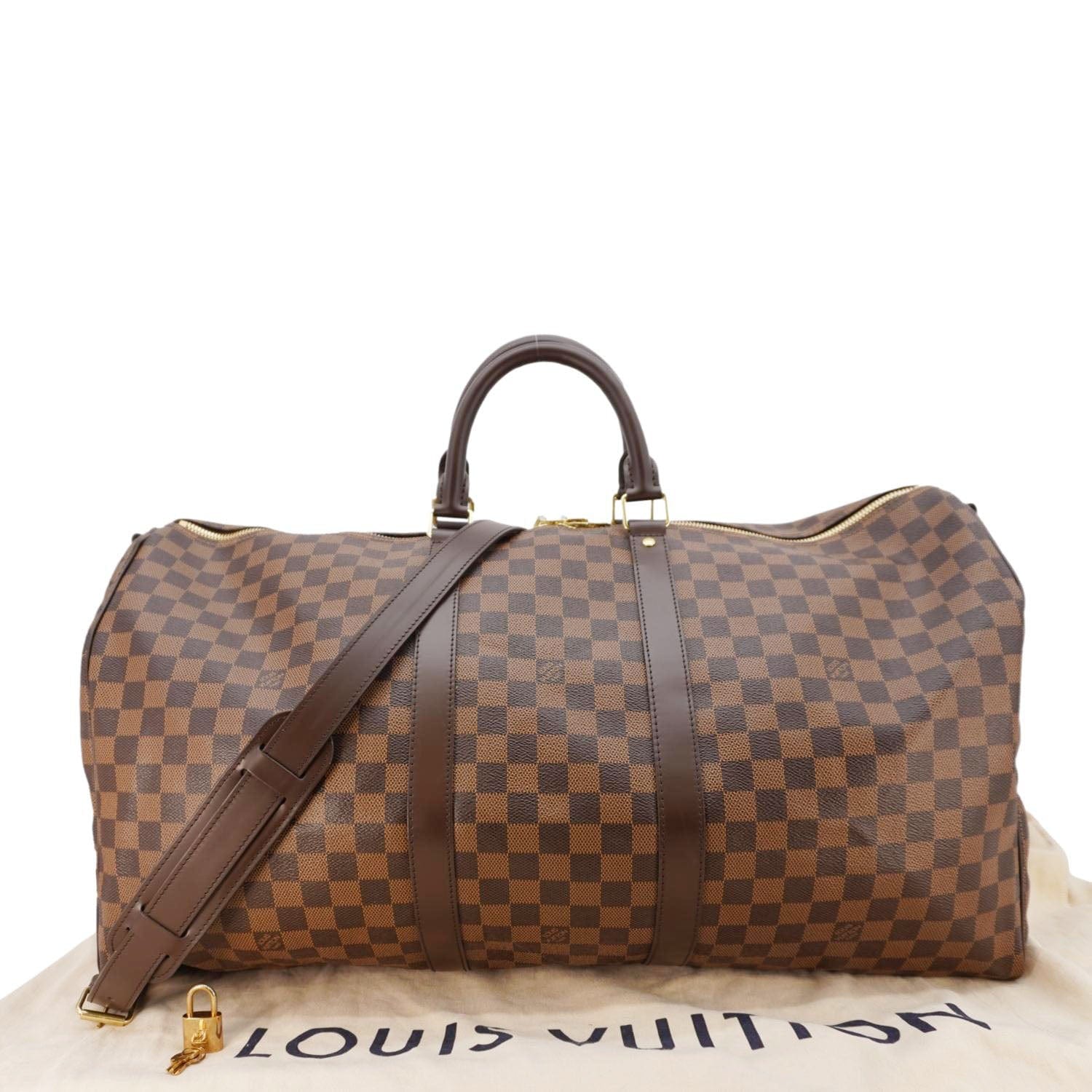 The Louis Vuitton Keepall Bandoulière 55 in Damier Ebene canvas is a sophisticated travel bag with ample space for your essentials. It features sturdy leather trims, gold-tone hardware, and a removable strap, ensuring stylish and convenient travel.