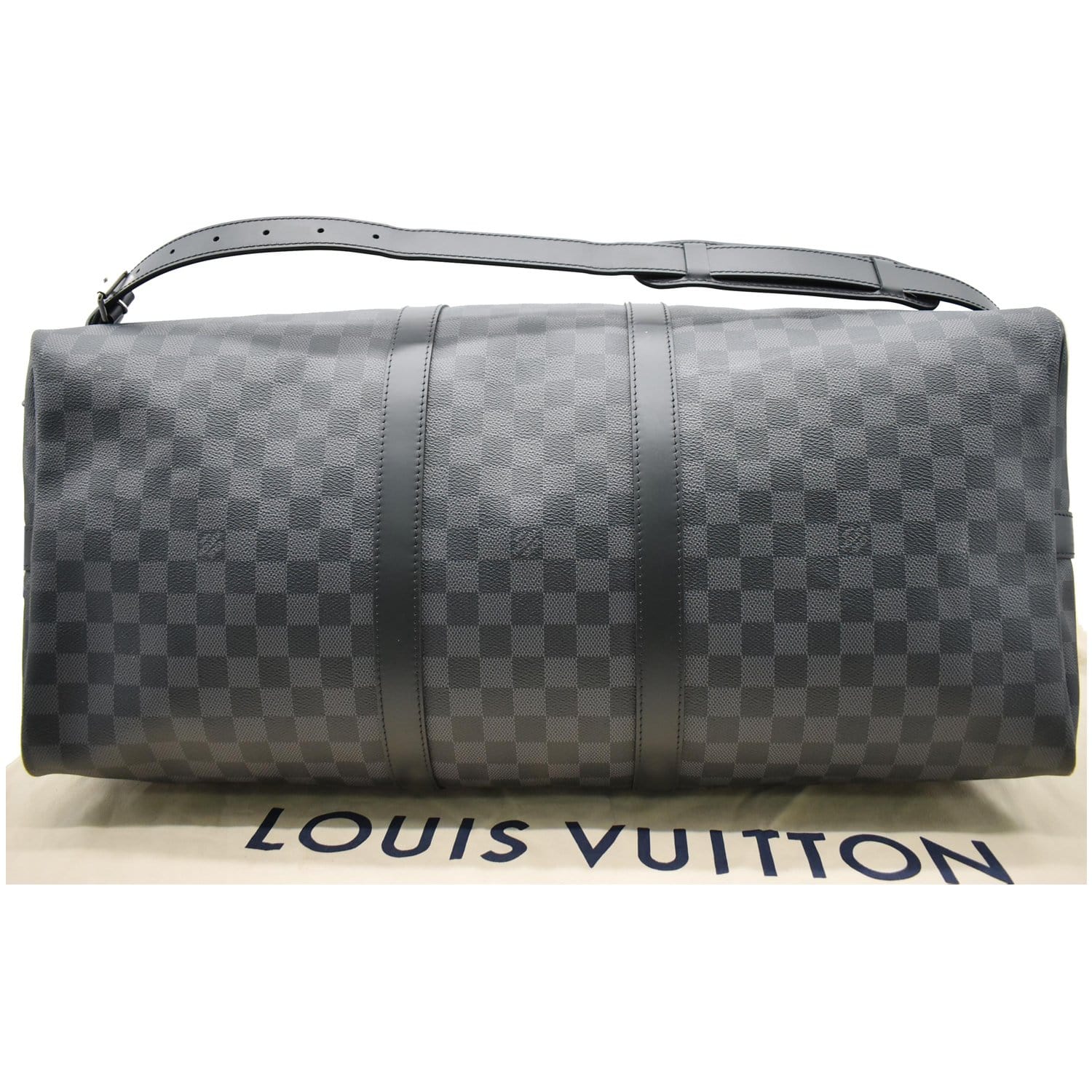 LOUIS VUITTON Keepall Bandouliere 55 Damier Graphite Travel Bag Black