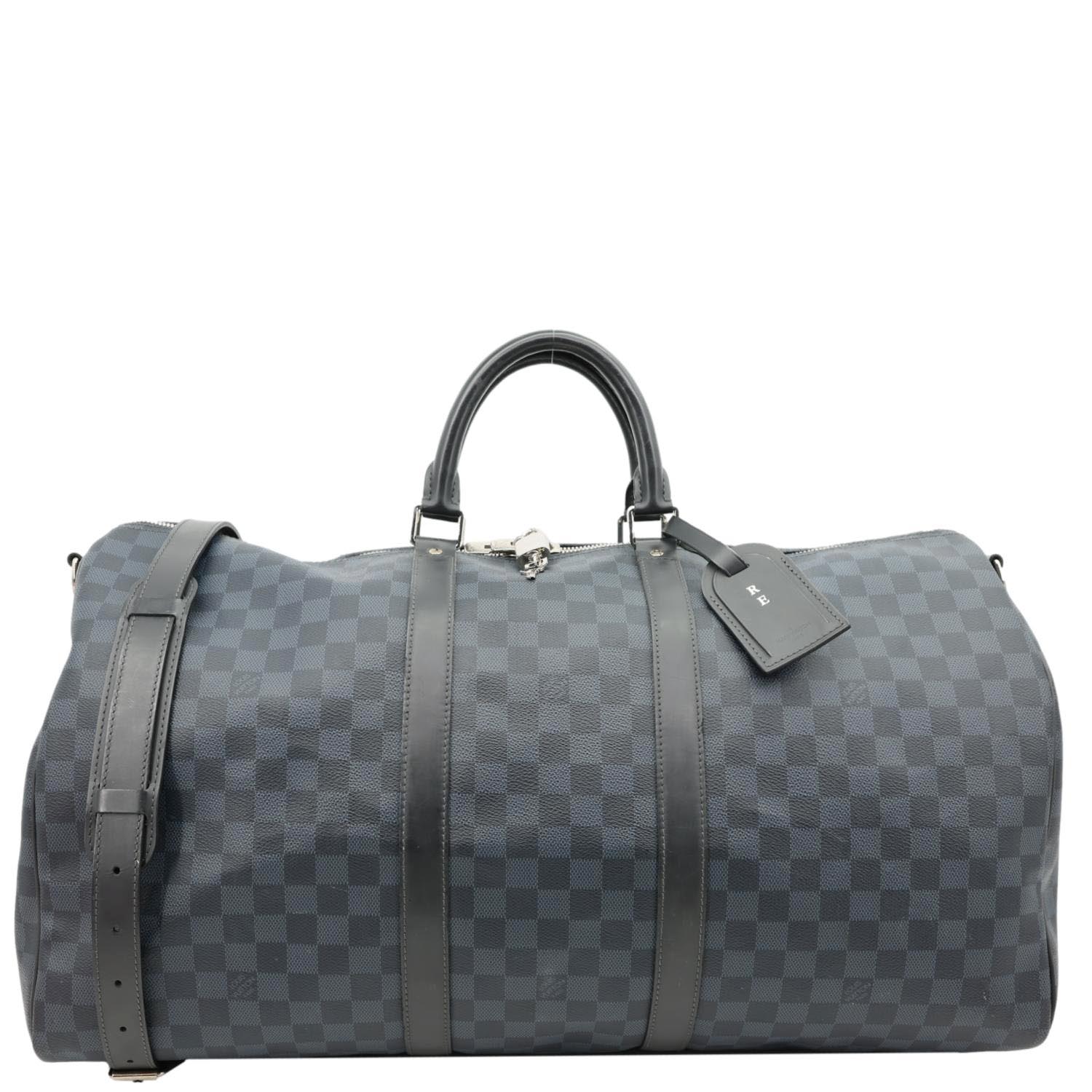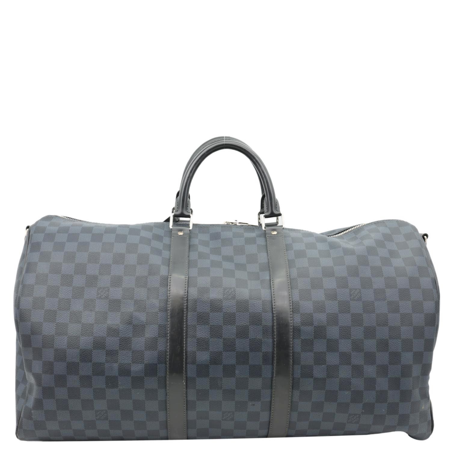 LOUIS VUITTON Keepall 55 Bandoulière Damier Cobalt Travel Bag Navy Blue features the bold cobalt checkered canvas in a spacious, iconic travel silhouette. Its adjustable strap and lightweight design make it perfect for stylish, comfortable journeys.