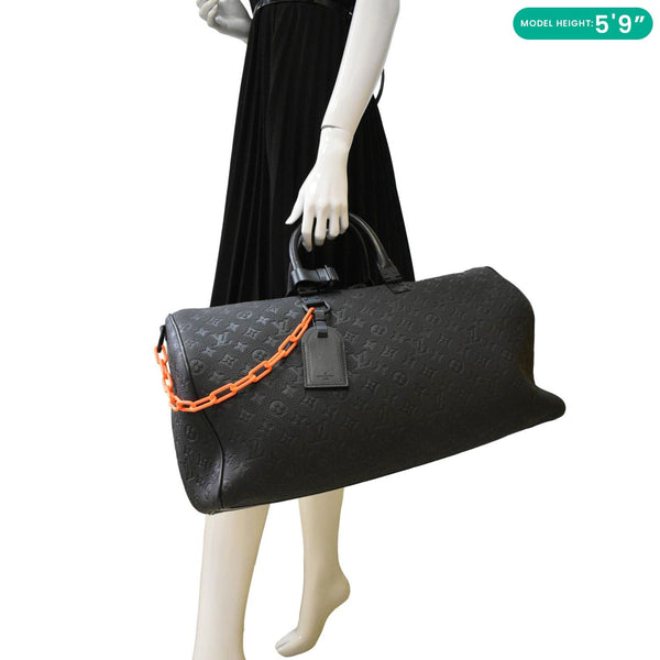 LOUIS VUITTON Keepall 50 by Virgil Abloh Taurillon Leather Travel Bag Absolute Black